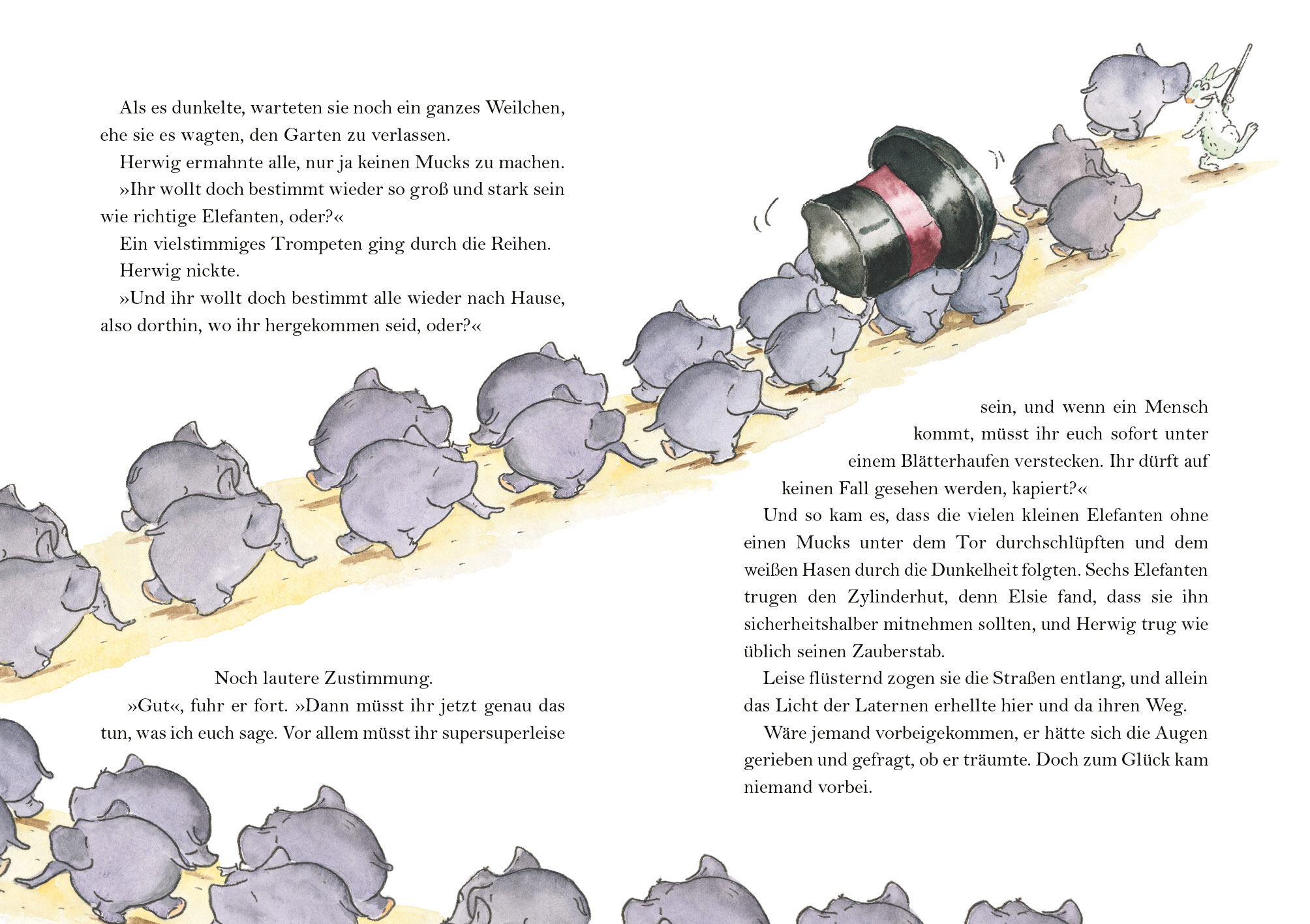 Herwig, ein Hase, der jahrelang vom Zauberer Hokus van Pokus in den Hut hinein- und wieder herausgezaubert wurde, findet sich eines Tages alleine wieder. Der wichtigste Mensch in seinem Leben hat ihm eine magische Brille (damit können Tiere lesen), einen Zauberstab, seinen Hut und einen Brief hinterlassen. Natürlich macht sich Herwig auf die Suche nach Hokus und trifft dabei auf Elsie, die Elefantendame. Elsie sucht ebenfalls ihren besten Freund, der wurde nämlich an einen anderen Zoo abgegeben. Die beiden beschließen, erst einmal aus der Not heraus, gemeinsame Sache zu machen und finden auf ihrem Weg viele Abenteuer und eine tiefe Freundschaft ... Witziges Abenteuer zum Vorlesen mit ganz viel Zauberei und zwei ungleichen Held*innen, die zueinander finden müssen, für Kinder ab 5 Jahren