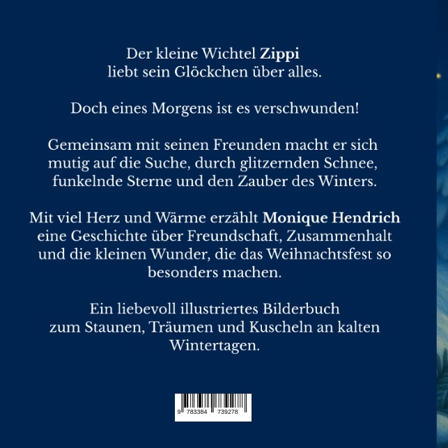 Zippi und das verlorene GlöckchenEine warmherzige Weihnachtsgeschichte für Kinder über Freundschaft, Hilfsbereitschaft und den Zauber der Winterzeit. Als der kleine Wichtel Zippi im verschneiten Wald sein silbernes Glöckchen verliert, beginnt ein besonderes Abenteuer. Gemeinsam mit seinen Freunden, dem Hasen, dem Eichhörnchen, der Maus und dem Igel, macht er sich auf die Suche nach dem verlorenen Glöckchen. Dabei entdecken sie, dass ein Glöckchen, so klein es auch ist, ein bisschen Licht und Freude in die Welt bringen kann. Ein liebevoll illustriertes Kinderbuch zum Vorlesen, Staunen und Träumen, perfekt für gemütliche Wintertage und funkelnde Weihnachtsabende.
