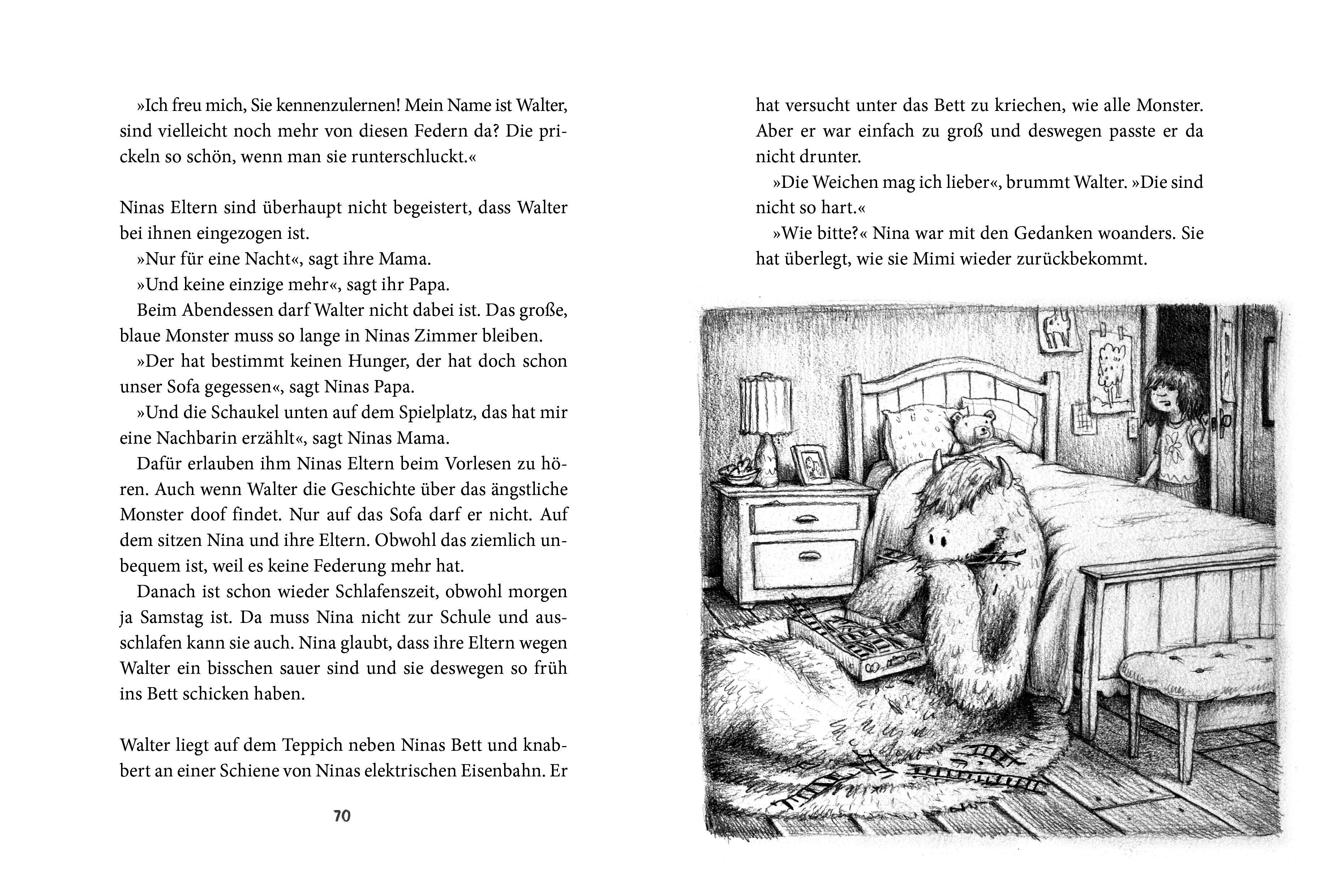 Nina wünscht sich nichts sehnlicher als ein Monster. Eines, das so furchterregend ist, dass sich niemand mehr traut, sie zu ärgern. Als sie den Versandkatalog einer Monsteragentur findet, scheint ihr Traum zum Greifen nah. Dort gibt es kleine und große Monster, gefährliche und verspielte, Monster in allen Farben. Das Monster namens Walter scheint Nina perfekt! Doch als nach einer schier endlosen Wartezeit die Spedition endlich liefert, versteckt sich in dem viel zu großen Karton nicht der furchteinflößende Walter, sondern die ängstliche Mimi ...