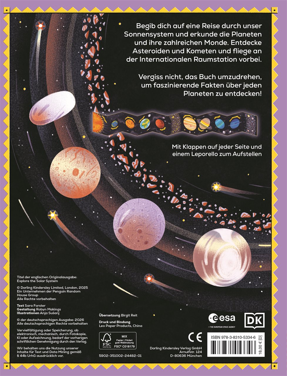 2-Meter-Leporello mit Klappen. Weltraumabenteuer in Kooperation mit der ESA. Für Kinder ab 5 Jahren