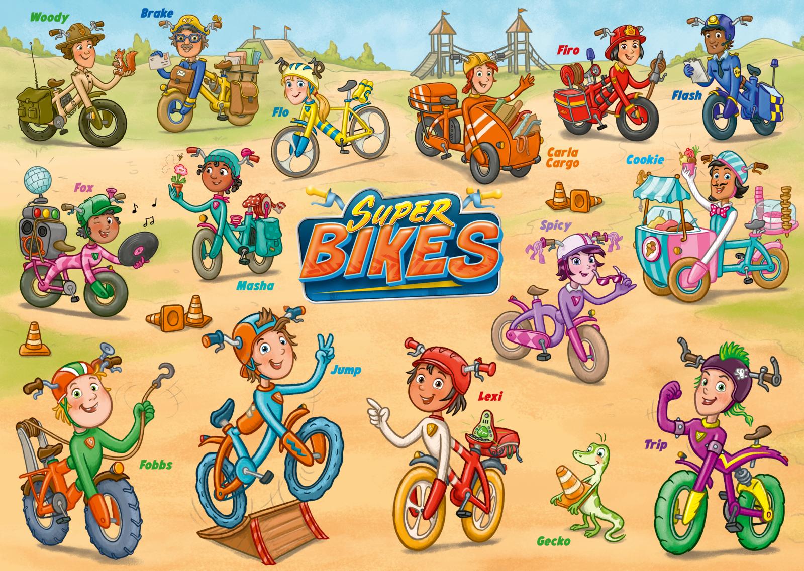Fahrräder haben für Kinder von 2 bis 8 Jahren eine große Bedeutung. Sie sind Begleiter, öffnen Welten, bringen Dynamik und Mobilität. Und endlich gibt es rund um Fahrräder eine eigene Fantasy-Welt - mit den liebenswerten und lebendigen SUPERBIKES! Mountainbike Jump, dem Rennrad Flo, dem Hollandrad Masha, dem Lastenrad Carla, dem Postrad Brake, dem flat-tyre-bike Fox und vielen anderen.