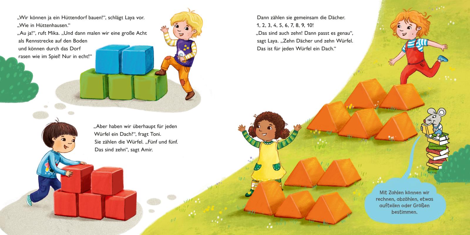 Laya, Mika, Toni und Amir gehen zusammen in den Kindergarten. Was die vier Freunde dort erleben, wie sie die Welt der Zahlen entdecken und dass Zählen- und Rechnenlernen nicht nur wichtig sind, sondern auch richtig Spaß machen - davon erzählt diese Geschichte.