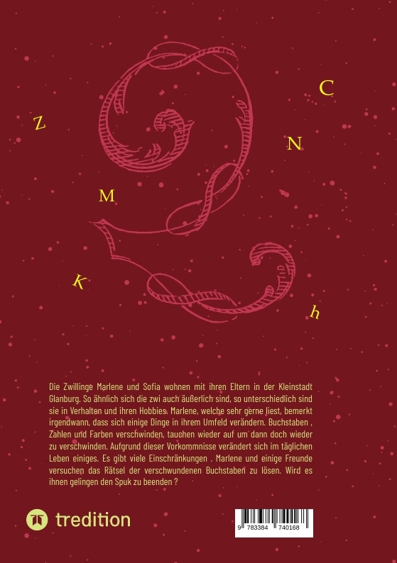 Die Zwillingsschwestern Marlene und Sofia leben mit ihren Eltern in Glanburg. Äußerlich sind sich die Beiden sehr ähnlich. In ihren Hobbies und Ansichten aber grundverschieden. Als Marlene beobachtet, das Buchstaben später auch Farben und Zahlen verschwinden, dann wieder auftauchen um erneut zu verschwinden, werden die Unterschiede noch deutlicher. Als Buchstaben und Zahlen langfristig verschwinden, werden die Auswirkungen im täglichen Leben immer bedrohlicher. Marlene versucht mit einigen anderen das Geheimnis der verschwundenen Buchstaben und Zahlen zu lösen. Treffpunkt für die Gruppe ist die Bibliothek, die wie sich bald herausstellt, nicht nur aus dem einem bekannten Raum besteht. Wird es der Gruppe um Marlene gelingen das Geheimnis zu lösen und werden die Zwillingsschwestern wieder zueinander finden ?