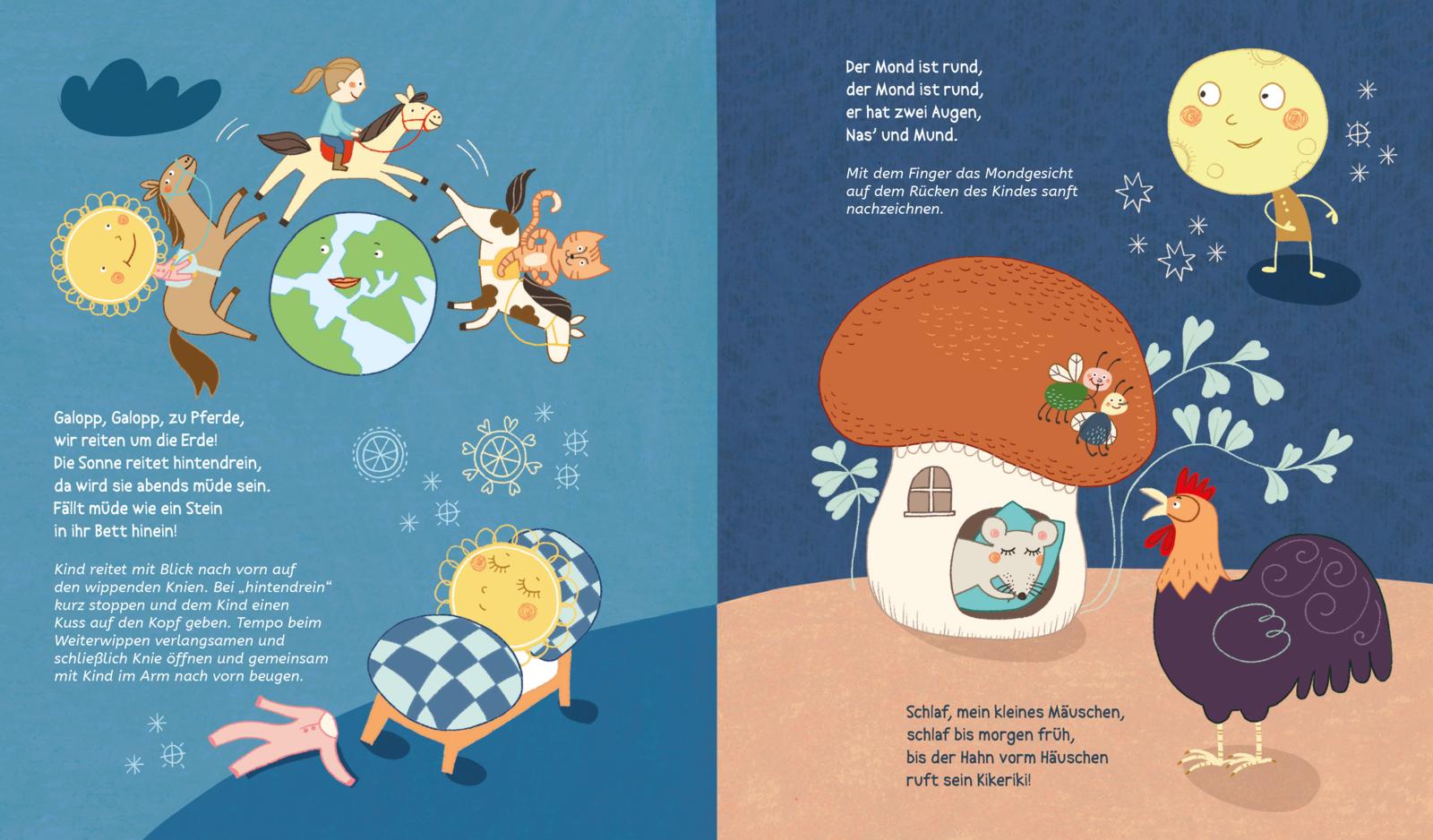 Gemeinsames Vorlesen fördert nicht nur Wortschatz, Konzentration und die Sprachfreude deines Kindes, sondern stärkt auch das Rhythmusgefühl sowie die Bindung zwischen Eltern und Kind. Denn kurze Reime und wiederkehrende Rhythmen vermitteln Geborgenheit. Die lustigen Fingerspiele verbessern die Motorik - und sorgen für jede Menge Spaß!