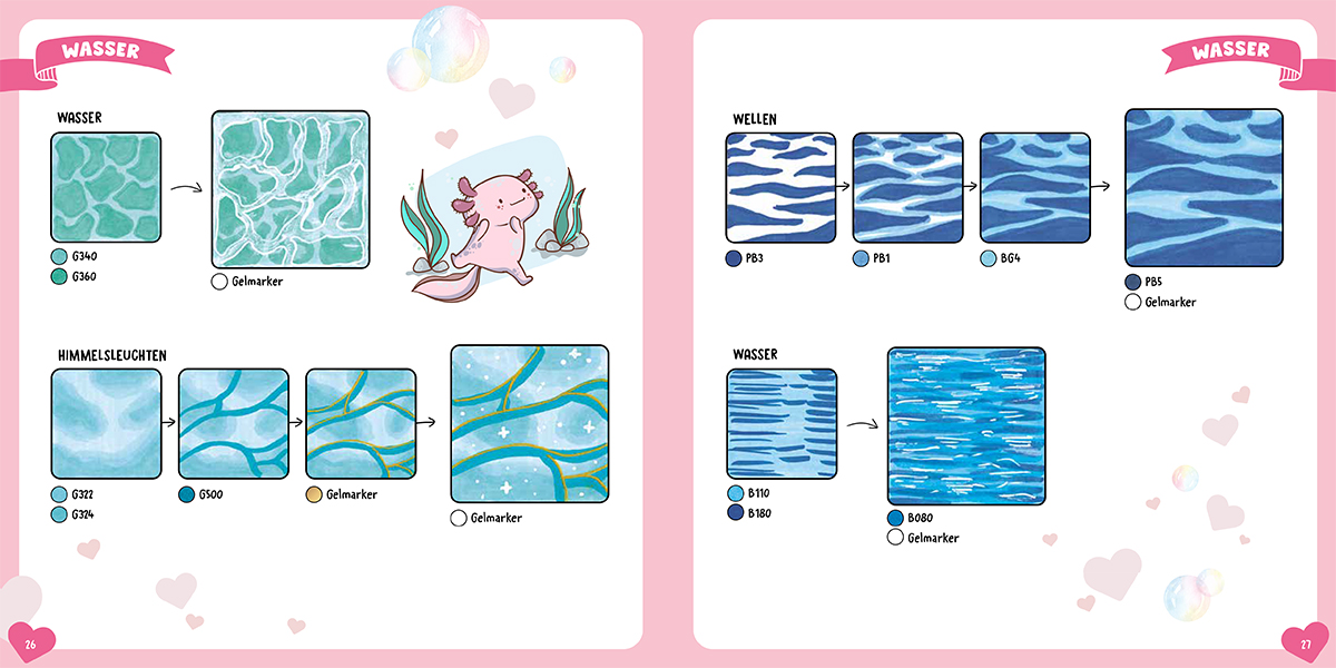 Dieses Buch ist deine persönliche Bibliothek für die wichtigsten Muster und Techniken. Kompakt und übersichtlich lernst du in einfachen Schritten, wie du beliebte Muster wie Wolken, Wasser oder Gras selbst umsetzen kannst. Die Muster sind thematisch sortiert, sodass du sie schnell findest. Ein umfassender Grundlagenteil vermittelt wichtigste Basics wie Farbkontraste, Verläufe, Layering und Dreidimensionalität. Ergänzt wird das Buch durch Trendtechniken wie den Holo-Effekt, Glow-Effekt oder kreative Coloring-Challenges. Ein tolles Extra: Farb-Swatches und Übungsvorlagen stehen dir zusätzlich digital zum Download bereit.