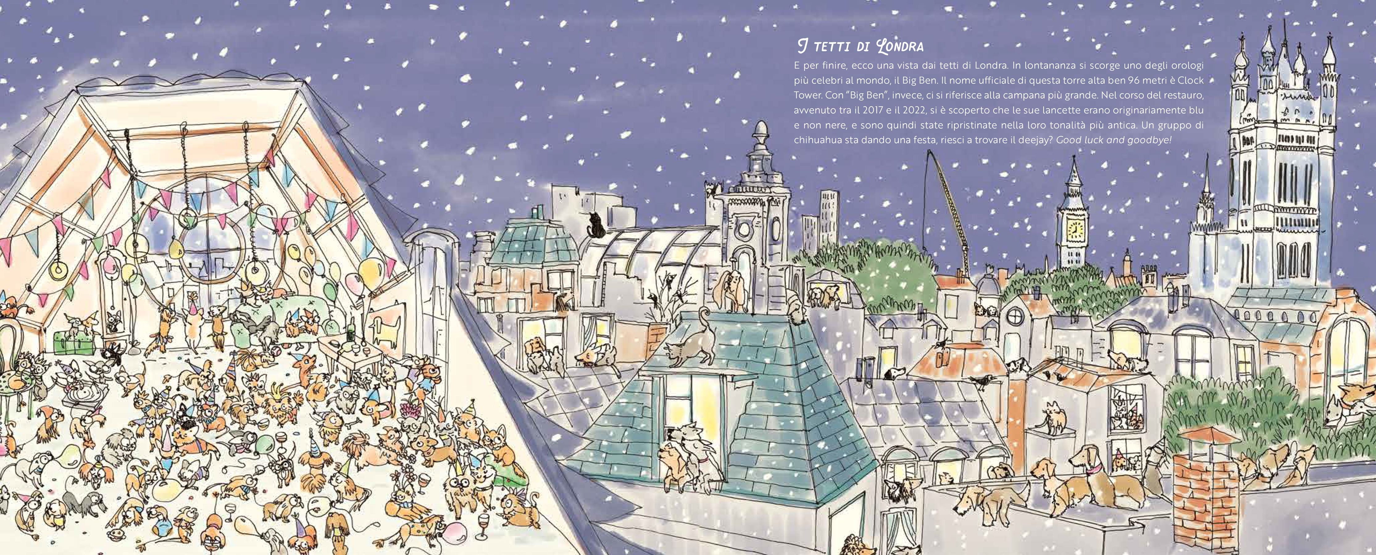 Haben Sie schon einmal die Wachablösung am Buckingham Palace gesehen? Sind Sie schon einmal durch die üppigen Gärten des St. James´s Park spaziert oder sind Sie schon einmal in einen roten Doppel deckerbus gestiegen und damit durch die berühmte Stadt an der Themse gefahren? Tauchen Sie ein in die wunderschönen Illustra- tionen dieses Buches und machen Sie sich bereit für eine besondere Reise, auf der Sie London und die vielen Kuriositäten entdecken kön- nen, die diese Stadt so einzigartig und kosmopolitisch machen. Viel Spaß beim Verfolgen der Hinweise im Text! Schärfen Sie Ihren Blick, um die ungewöhnlichsten Details in einem London voller vierbeiniger Freunde zu entdecken!