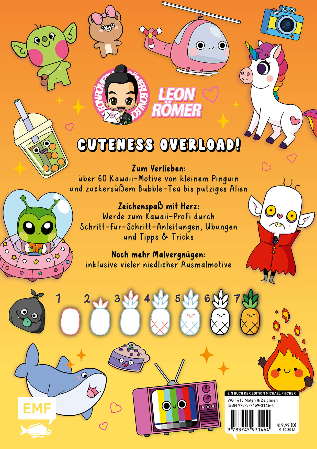 Lerne in einfachen Steps, die süßesten Gegenstände und umwerfend niedliches Essen zu zeichnen und tauche ein in die bunte Welt der Kawaii-Motive! Neben den Schritt-für-Schritt-Anleitungen teilt Leon Römer seine besten Zeichenübungen, sowie unzählige Tipps und Tricks zum Zeichnen und Ausmalen seiner niedlichen Kawaii-Welt. Ob für Kawaii-Fans oder für alle, die sich eine süße Auszeit gönnen möchten - die zuckersüßen Motive bringen Farbe und Freude in deinen Alltag!