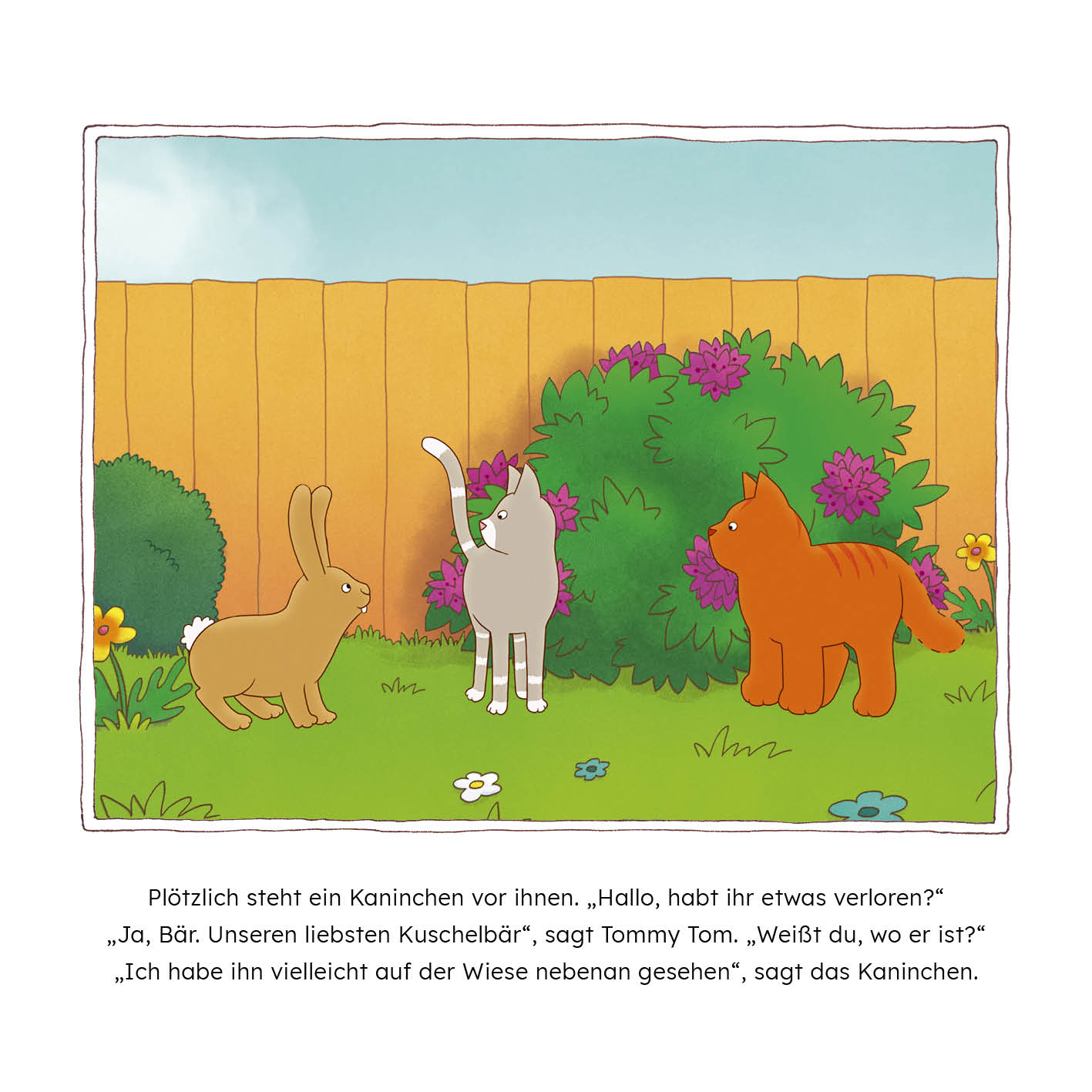 Tommy Toms Lieblingskuscheltier ist verschwunden, Bär. Wie soll er ohne Bär jemals wieder einschlafen können? Es beginnt eine hektische Suche im Haus und im Garten. Gut, dass auch seine Freundin Mauzi Maus bei der Suche mitmacht!