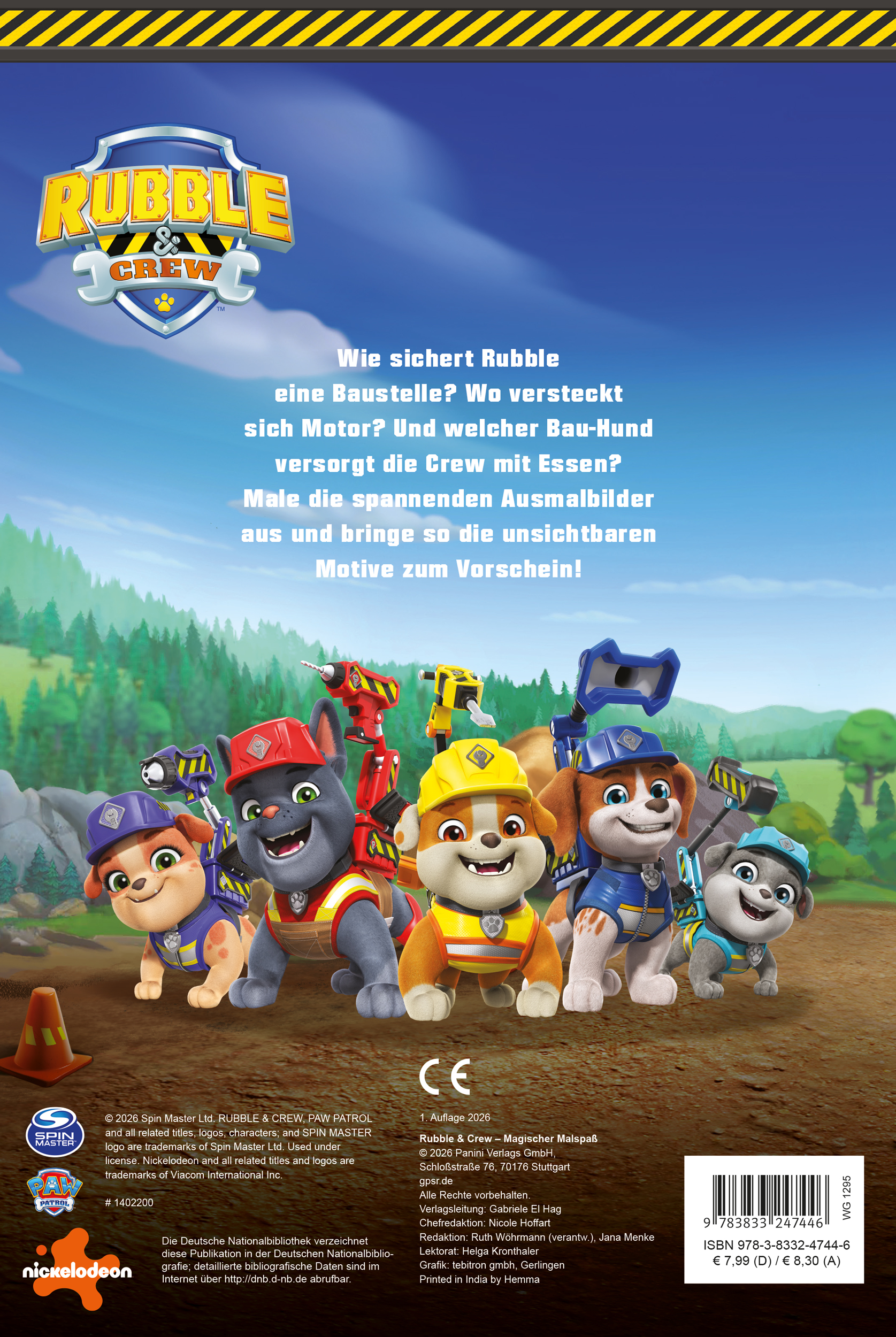 Wie sichert Rubble eine Baustelle? Wo versteckt sich Motor? Und welcher Bau-Hund versorgt die Crew mit Essen? Male die spannenden Ausmalbilder aus und bringe so die unsichtbaren Motive zum Vorschein!