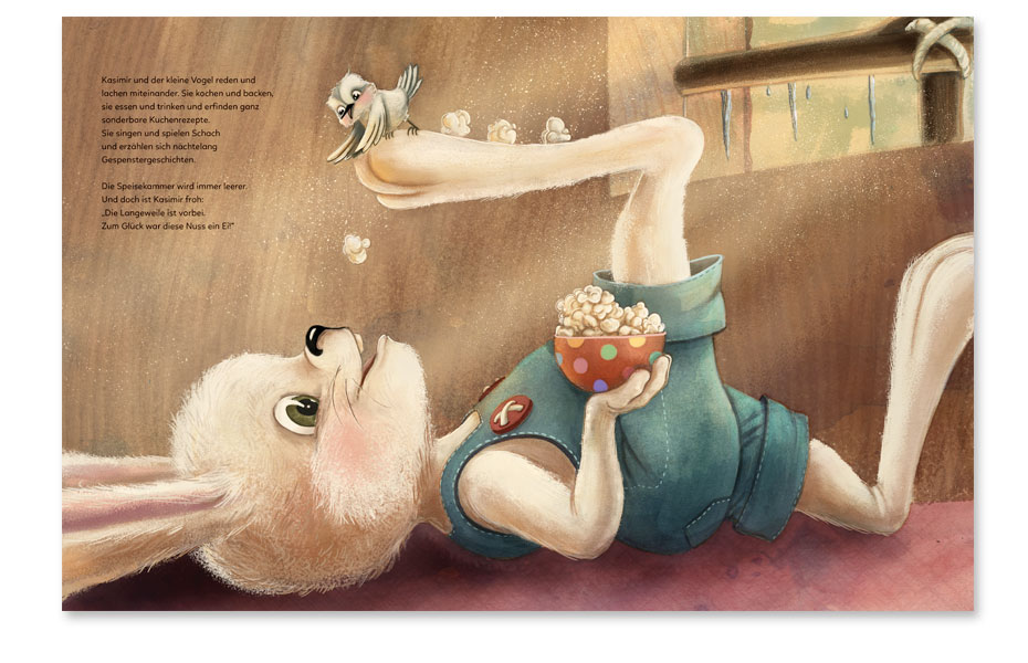 Der Hase Kasimir liebt es, Vorräte zu sammeln. In seinem Zuhause unter der alten Eiche stapeln sich vor dem Wintereinbruch Feldfrüchte, Obst, Pilze und Nüsse. Davon gibt er ungern anderen Tieren ab. Sollen sie sich doch selber vorsorgen! Doch dann kommt Kasimir unfreiwillig zu einem kleinen Mitbewohner und lernt zu seiner eigenen Überraschung die Vorzüge des geselligen Lebens und Füreinander-Sorgens kennen. Miteinander, erkennt er, ist das Leben so viel schöner ...