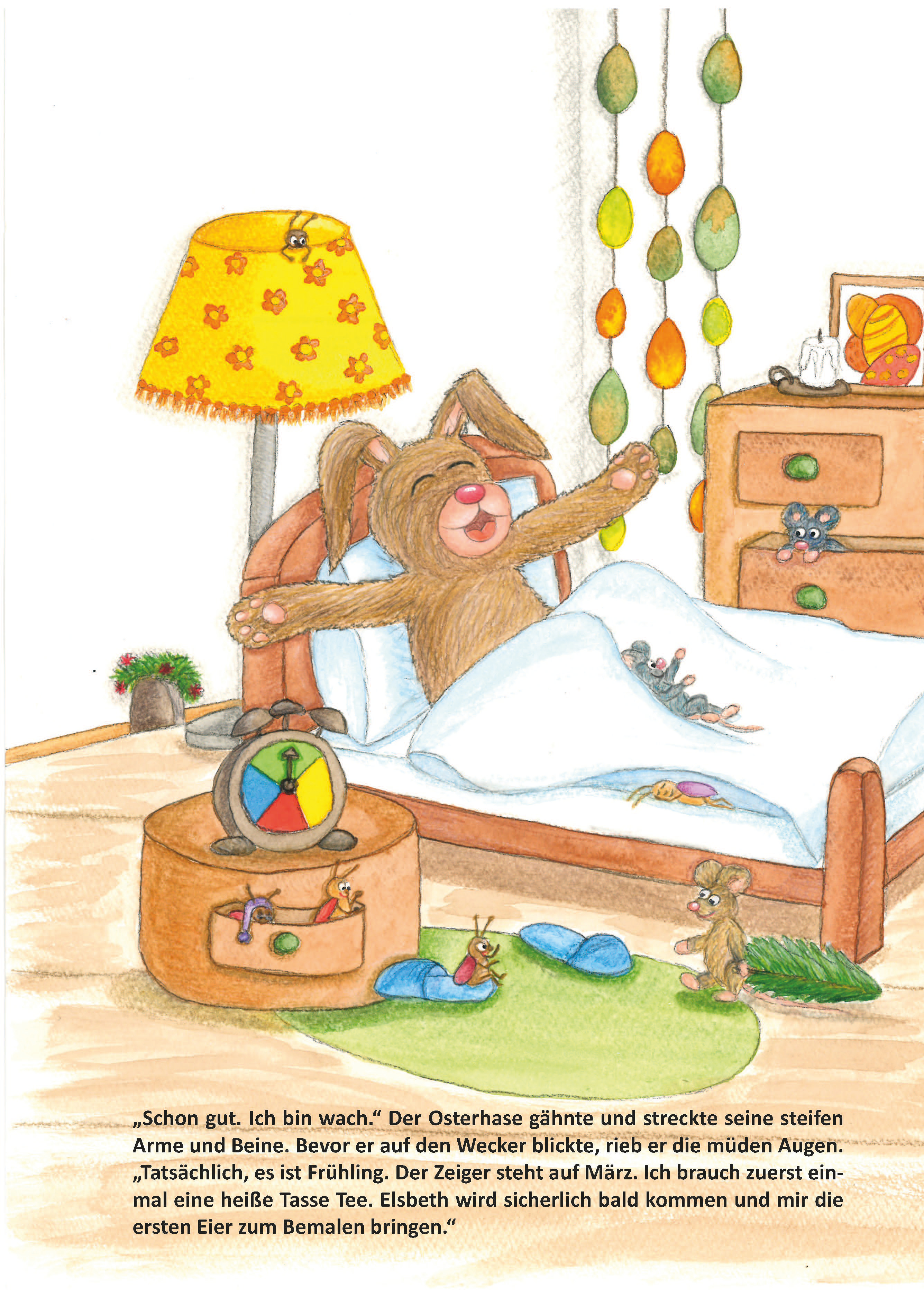 Auch seine Freundin Elsbeth, das Huhn, hat ihm noch keine Eier zum Bemalen für das Osterfest gebracht. Also beschließt der Osterhase, selbst auf den Bauernhof zu gehen.