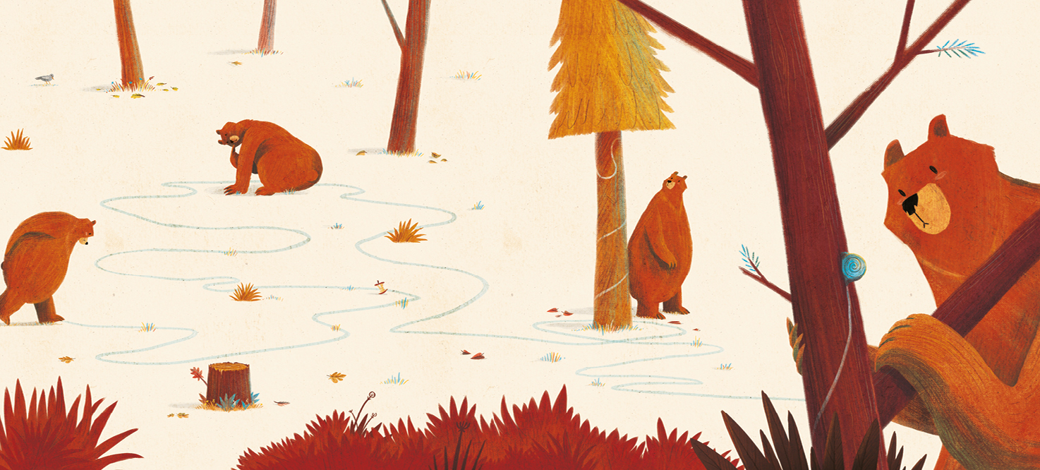 Ein Bär und ein Schneck lebten im selben Wald. Beide zählten gerne die Bäume, beide schauten gern zu den Gipfeln ferner Berge, und beide fraßen für ihr Leben gern. Aber der Bär und der Schneck redeten nie miteinander. Denn erst, wenn der Bär sich zum Winterschlaf in seine Höhle gelegt hatte, erwachte der Schneck aus seinem Sommerschlaf. Immer, wenn der Bär erwachte, fand er die Leckerbissen, die der Schneck für ihn bereitgelegt hatte. Der israelische Künsler Shahar Kober erzählt ruhig und mit Wärme die ermutigende Geschichte einer unwahrscheinlichen Freundschaft über Grenzen hinweg.