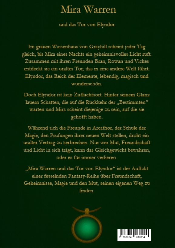 Begleiten Sie Mira Warren auf eine spannende Reise voller Magie, Geheimnisse und Abenteuer.Wer Harry Potter liebt, wird Mira Warren ins Herz schließen.Mit "Das Tor von Elyndor" startet eine geplante Trilogie, die Leser*innen in verwunschene Orte führt, magische Gegenstände entdecken lässt und epische Abenteuer verspricht.