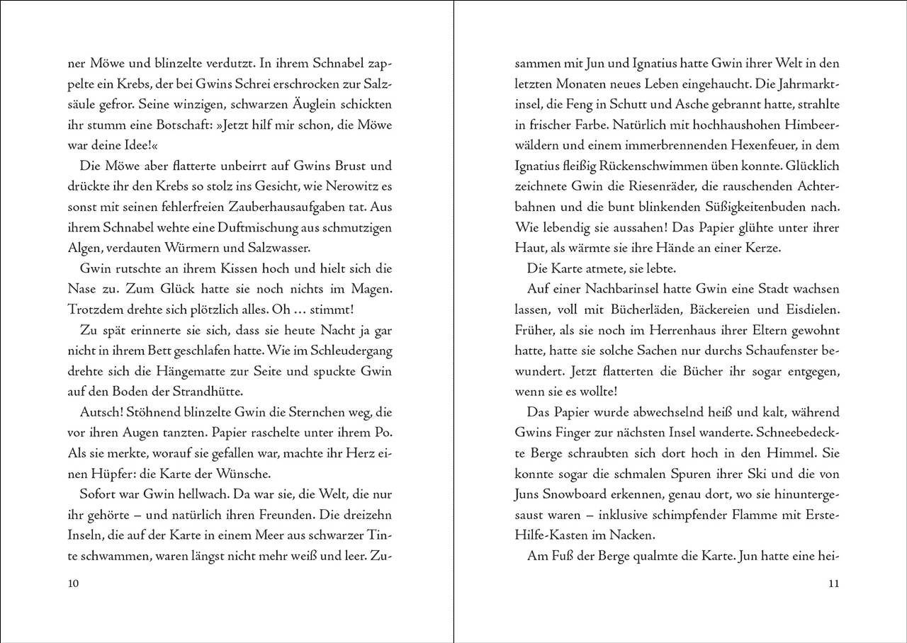 Das Geheimnis des Windflüsterers Gwin kann ihr Glück kaum fassen: Sie ist Zauberlehrling von Madame Manou - und das zusammen mit ihren Freunden Jun und Ignatius! Doch der gemütliche Alltag zwischen Vergrößerungszaubern, Sternsalamandern und Himbeerpfannkuchen währt nicht lange. Als Gwin allein den Zauberladen aufräumt, erscheint ein mysteriöser Gast, der sie mit seinem Windzauberkräften sofort fasziniert. Wie es sich gehört, bezahlt er mit einem langen rabenschwarzen Haar und Gwin kann nicht anders. Sie webt es in Madame Manous magisches Schutznetz ein, ohne auf die Hexe zu warten. Und plötzlich spielt der gesamte Zauberladen verrückt! Treppen werden zu Rutschen, Türen verweigern das Öffnen und dann taucht auch noch eine unbekannte Insel in Gwins Kartenwelt auf ...