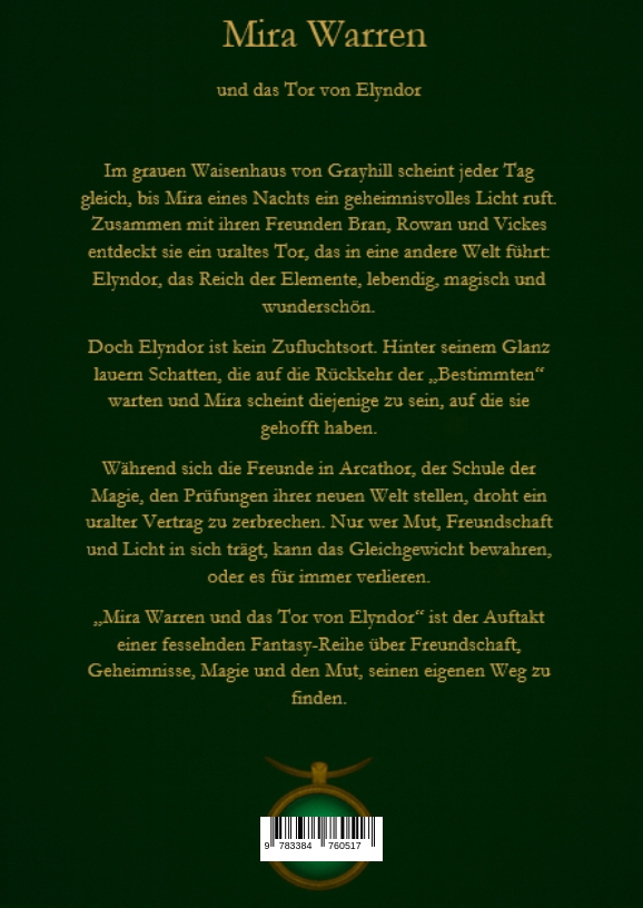 Tauche ein... in die magische Welt von Mira Warren.Begleite sie auf eine Reise voller Geheimnisse, Zauber... und unvergesslicher Abenteuer.Wer Harry Potter liebt, wird Mira Warren sofort ins Herz schließen!Mit "Das Tor von Elyndor" beginnt eine fesselnde Trilogie, die dich an verwunschene Orte führt, dich magische Artefakte entdecken lässt und dich in epische Abenteuer zieht, die Seite für Seite größer werden. Öffne das Tor. Spüre den Zauber. Und begleite Mira in eine Welt, die dich so schnell nicht wieder loslässt.Erlebe den Zauber.Entdecke das Abenteuer.
