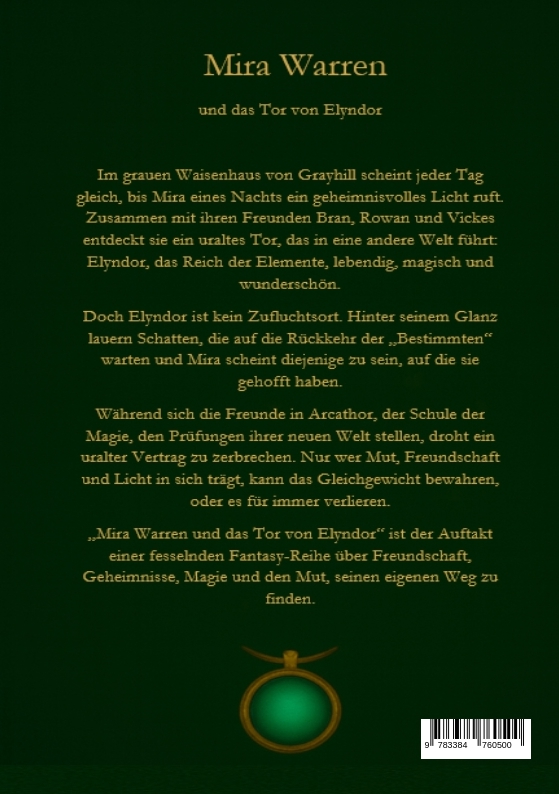 Tauche ein... in die magische Welt von Mira Warren.Begleite sie auf eine Reise voller Geheimnisse, Zauber... und unvergesslicher Abenteuer.Wer Harry Potter liebt, wird Mira Warren sofort ins Herz schließen!Mit "Das Tor von Elyndor" beginnt eine fesselnde Trilogie, die dich an verwunschene Orte führt, dich magische Artefakte entdecken lässt und dich in epische Abenteuer zieht, die Seite für Seite größer werden. Öffne das Tor. Spüre den Zauber. Und begleite Mira in eine Welt, die dich so schnell nicht wieder loslässt.Erlebe den Zauber.Entdecke das Abenteuer.