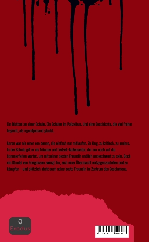 Ein Blutbad an einer Schule. Ein Schüler im Polizeibus. Und eine Geschichte, die viel früher beginnt, als irgendjemand glaubt. Aaron war nie einer von denen, die einfach nur mitlaufen. Zu klug, zu kritisch, zu anders. In der Schule gilt er als Träumer und Teilzeit-Außenseiter, der nur noch auf die Sommerferien wartet, um mit seiner besten Freundin endlich unbeschwert zu sein. Doch ein Strudel von Ereignissen zwingt ihn, sich einer Übermacht entgegenzustellen und zu kämpfen - und plötzlich steht auch seine beste Freundin im Zentrum des Geschehens.