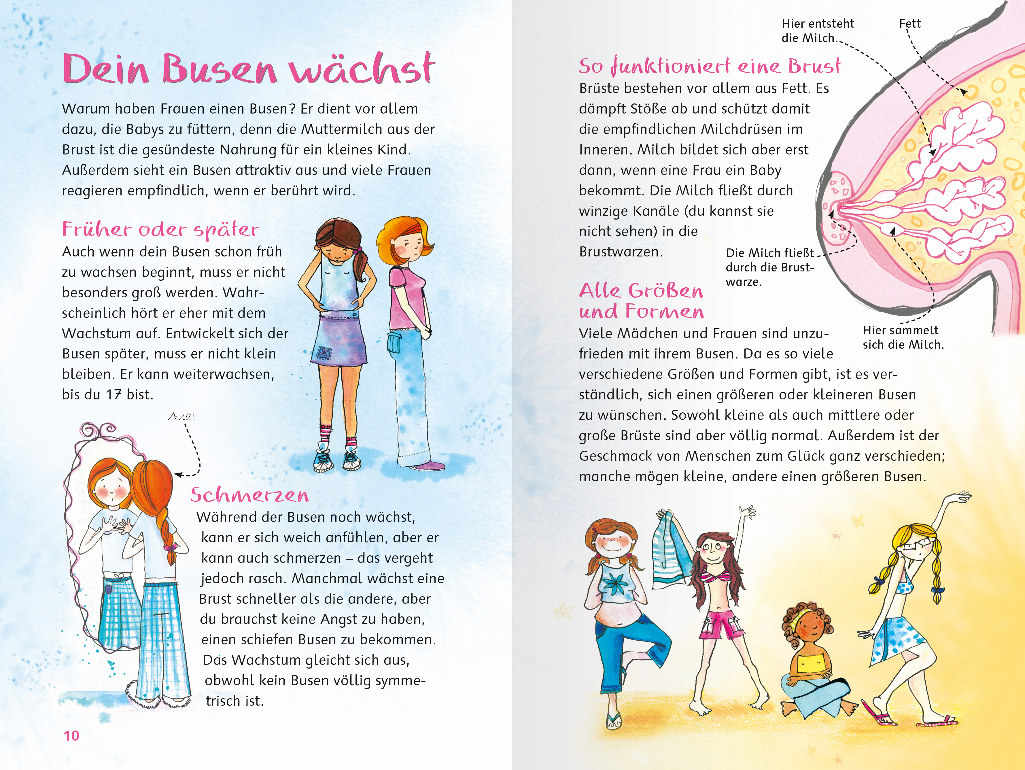 Das Buch für Mädchen zu Beginn der PubertätEltern können sicher sein, dass ihre Kinder alle wichtigen Informationen erhalten, um die schwierigen Jahre des Erwachsenwerdens gut zu überstehen. Was verändert sich in mir? Warum fahren meien Gefühle ständig Achterbahn? Wie läuft das mit den Jungs? Auf all diese Fragen rund um den Wandel des eigenen Körpers gibt das witzig illustrierte Buch fundierte unverkrampfte Antworten in jugendgerechter Sprache.Wissen schaft Sicherheit und Vertrauen Auch die Entdeckung der eigenen Gefühle und die erwachende Sexualität werden thematisiert: Bin ich attraktiv? Wie halte ich mich fit? Was gilt es beim Thema Sex zu beachten und wie verhüte ich richtig? Dieses Handbuch gibt Sicherheit, Selbstvertrauen und Orientierung auf dem spannenden Weg vom Mädchen zur Frau.Macht Mädchen stark und fördert das Selbstvertrauen.