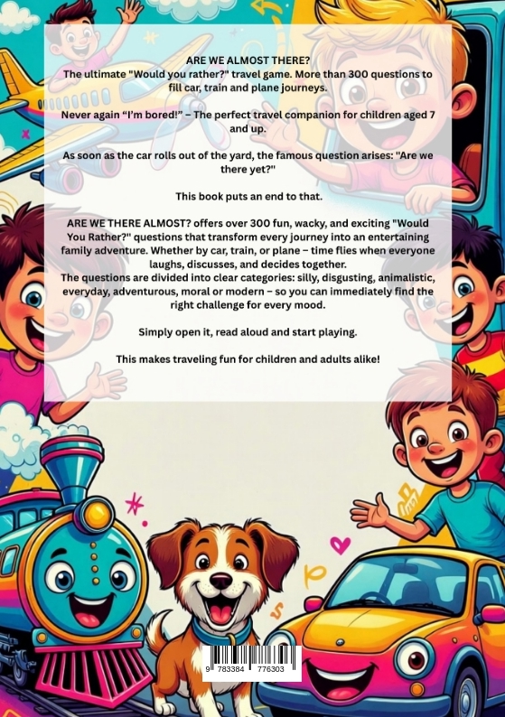 | Schlagworte | activity ideas for long train rides kids • anti-boredom book for on-the-go • family game book car train airplane • fun dilemma questions for kids travel • kids travel quiz and question book • road trip games for kids and parents • screen-free entertainment for children • travel game for family road trips • would you rather book for kids ages 7+ |