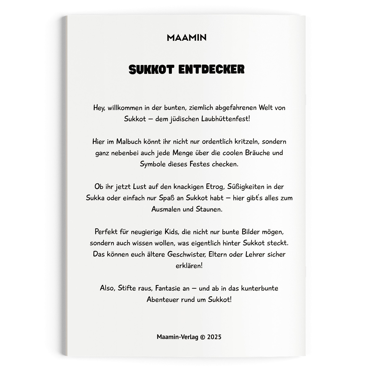Der Maamin-Verlag bietet ein stetig wachsendes Sortiment liebevoll gestalteter Publikationen rund um die jüdischen Feiertage. Unsere Bücher, Lernmaterialien und interaktiven Inhalte laden dazu ein, Traditionen lebendig zu halten und Mizwot mit Freude, Tiefe und praktischem Bezug in den Alltag zu integrieren. Ob als Begleiter für Veranstaltungen mit Kindern und Erwachsenen, als Bestandteil sorgfältig zusammengestellter Geschenkpakete oder als inspirierender Akzent im Buchladen – unsere Publikationen hinterlassen Eindruck und öffnen den Blick für die spirituelle Kraft jüdischen Lebens. „Maamin“ (hebräisch מאמין – „[Ich] glaube / vertraue“) ist dabei weit mehr als ein Name: Es ist Ausdruck unserer Überzeugung, dass das Leben nach der Tora ein Weg zu Segen und innerem Wachstum ist. Aus Vertrauen entsteht die Kraft, Mizwot zu leben – und durch das Leben der Mizwot wächst das Vertrauen. So entsteht ein gesegneter Kreislauf, der persönliche Entwicklung fördert und die Verbindung zu Haschem stärkt. Unser Anliegen ist es, mit altersgerechten und ansprechend gestalteten Inhalten die Schönheit und Tiefe jüdischer Tradition zu vermitteln und den Reichtum von 3500 Jahren gelebter Geschichte in die Gegenwart zu tragen. Auf diese Weise leisten wir unseren Beitrag zu einem echten Tikkun Olam – der Heilung und Vervollkommnung der Welt, wie sie der Ewige vorgesehen hat.