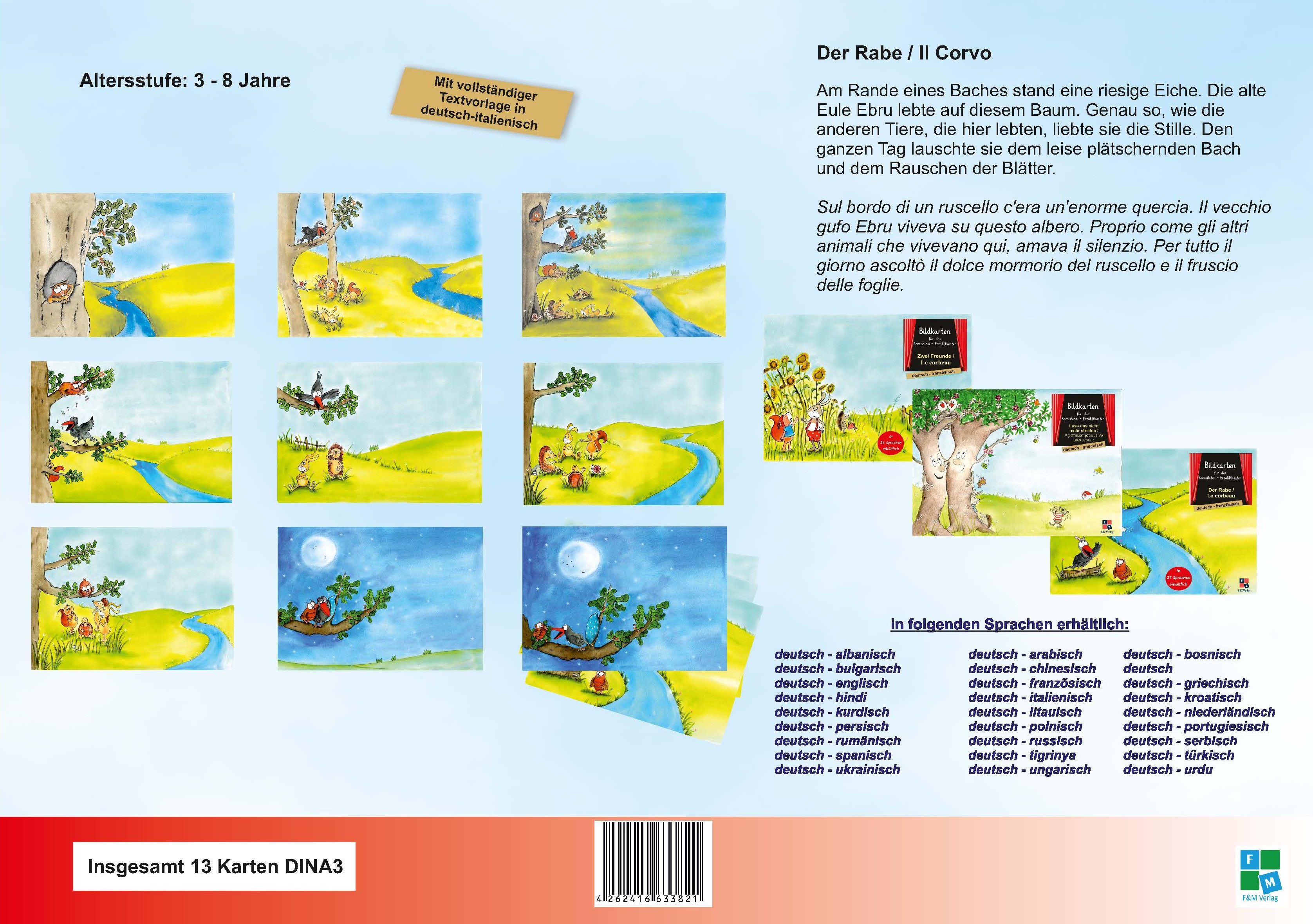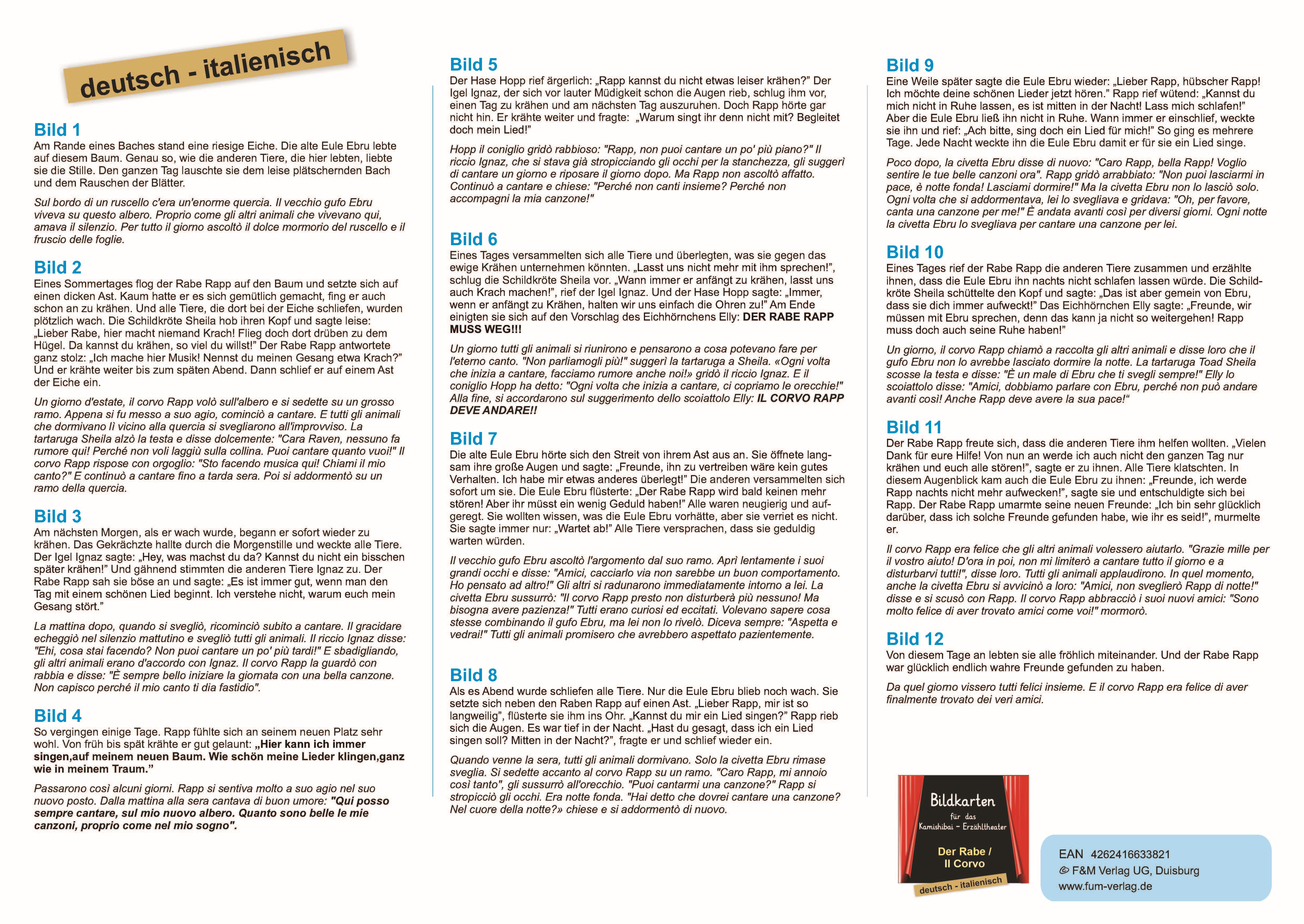 Zweisprachige Bildkarten der Bilderbuchgeschichte "Der Rabe" für das Kamishibai-Theater in deutsch/italienisch
