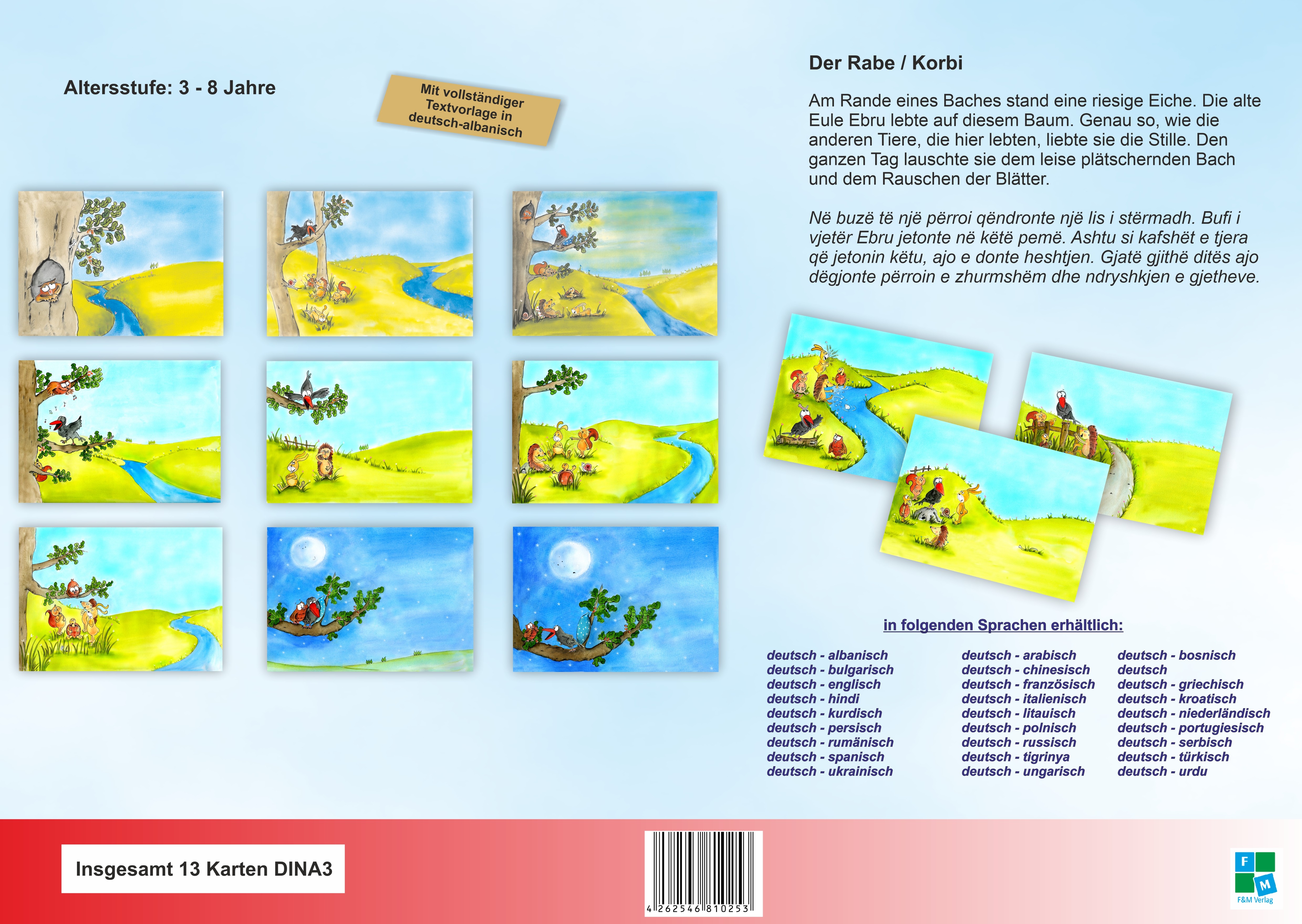 Zweisprachige Bildkarten der Bilderbuchgeschichte "Der Rabe" für das Kamishibai-Theater in deutsch/albanisch