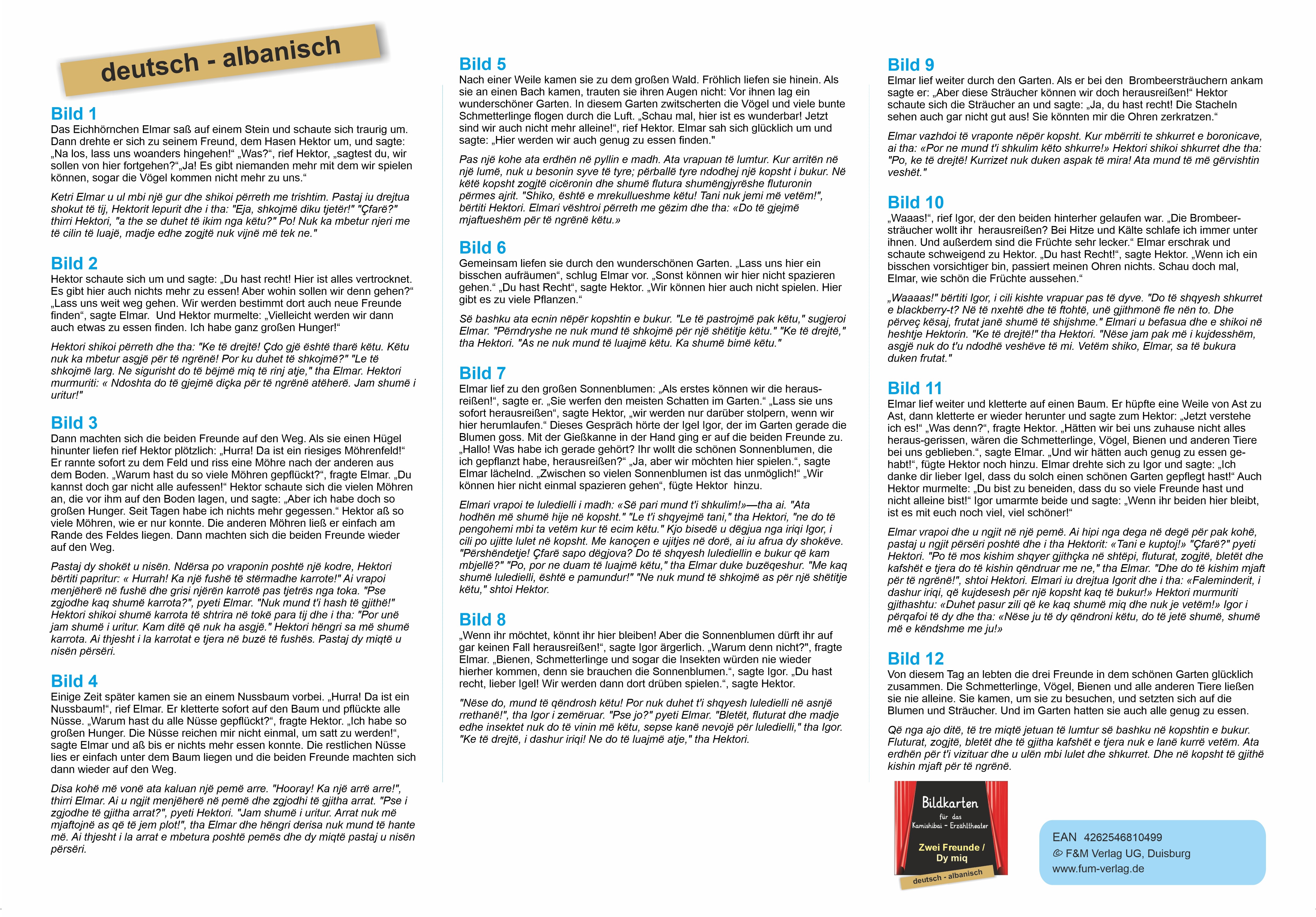 | Schlagworte | Albanisch • Bildkarte • Bildkarten • Deutsch • Eichhörnchen • Erzähltheater • Freunde • Hase • Kamishibai • Natur • Sprachförderung • Streit • Tiere |