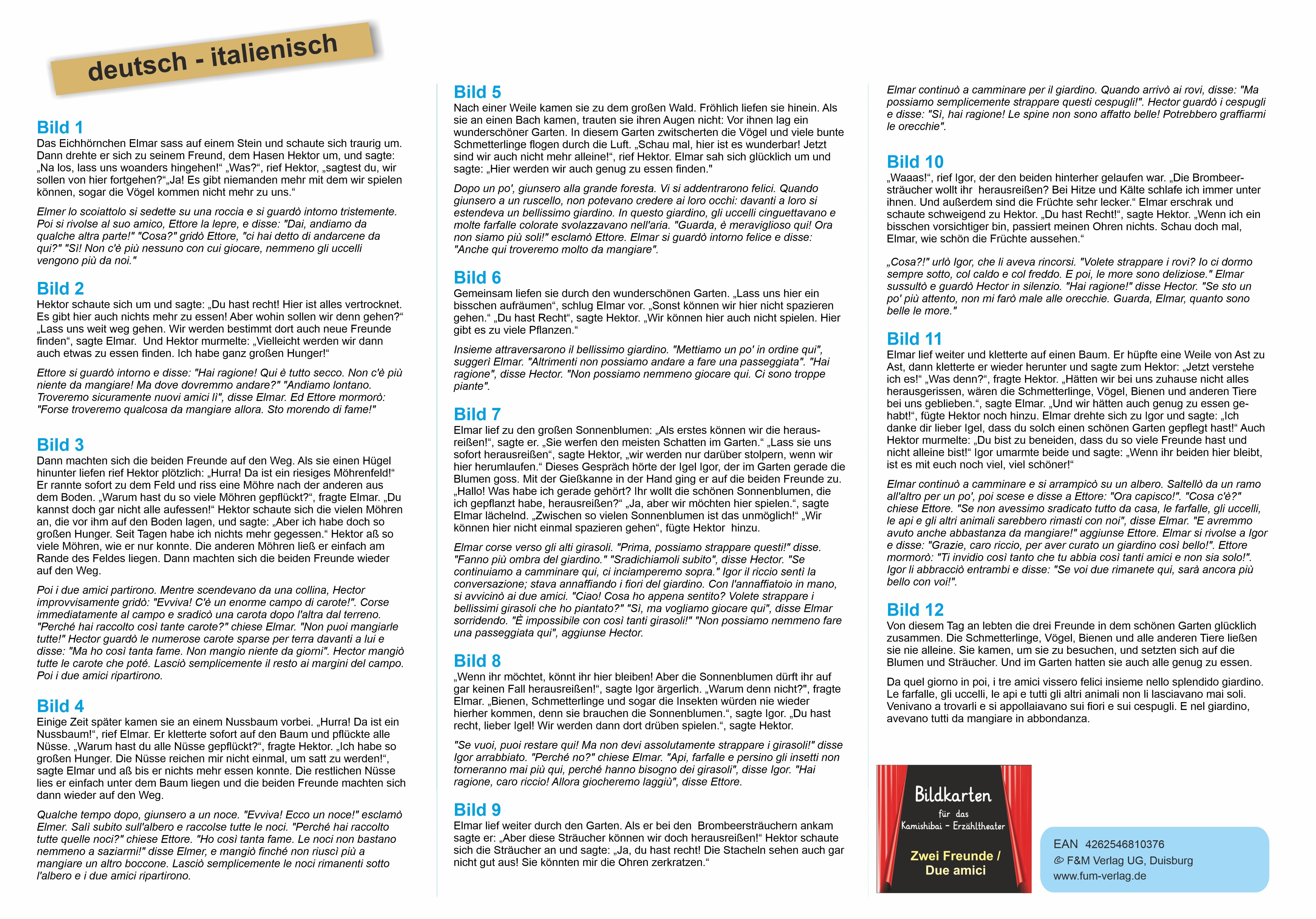 Bildkarten der Bilderbuchgeschichte "Zwei Freunde" für das Kamishibai-Theater in deutsch/italienisch