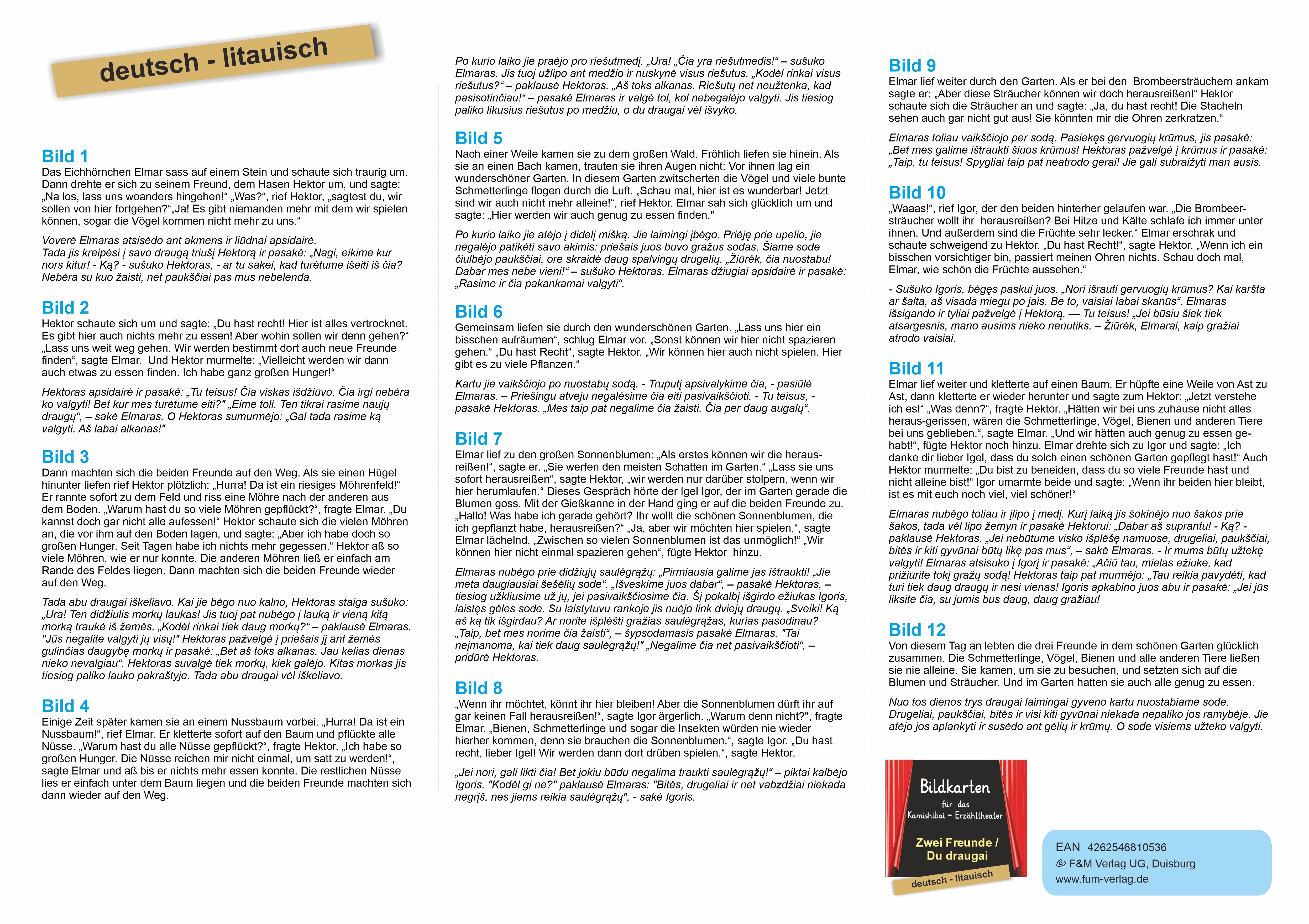 | Schlagworte | Bildkarte • Bildkarten • Deutsch • Eichhörnchen • Erzähltheater • Freunde • Hase • Kamishibai • Litauisch • Natur • Sprachförderung • Streit • Tiere |
