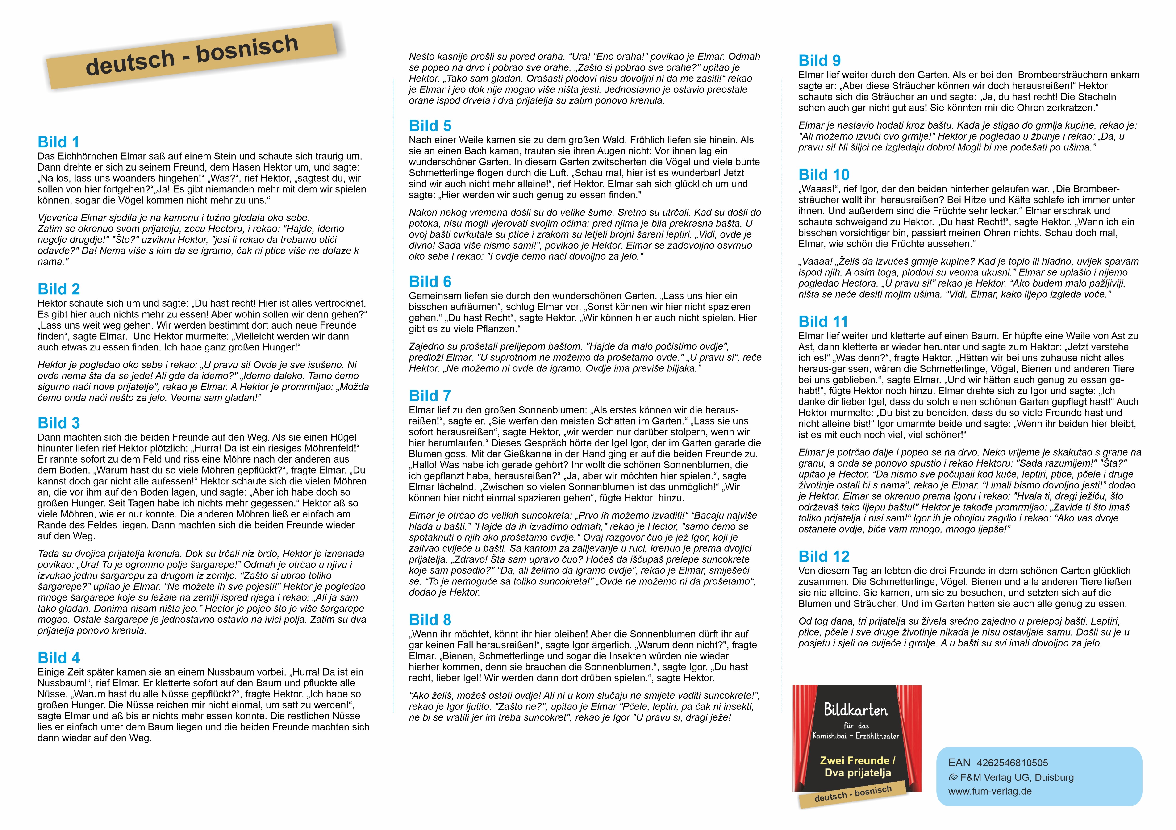 Bildkarten der Bilderbuchgeschichte "Zwei Freunde" für das Kamishibai-Theater in deutsch/bosnisch