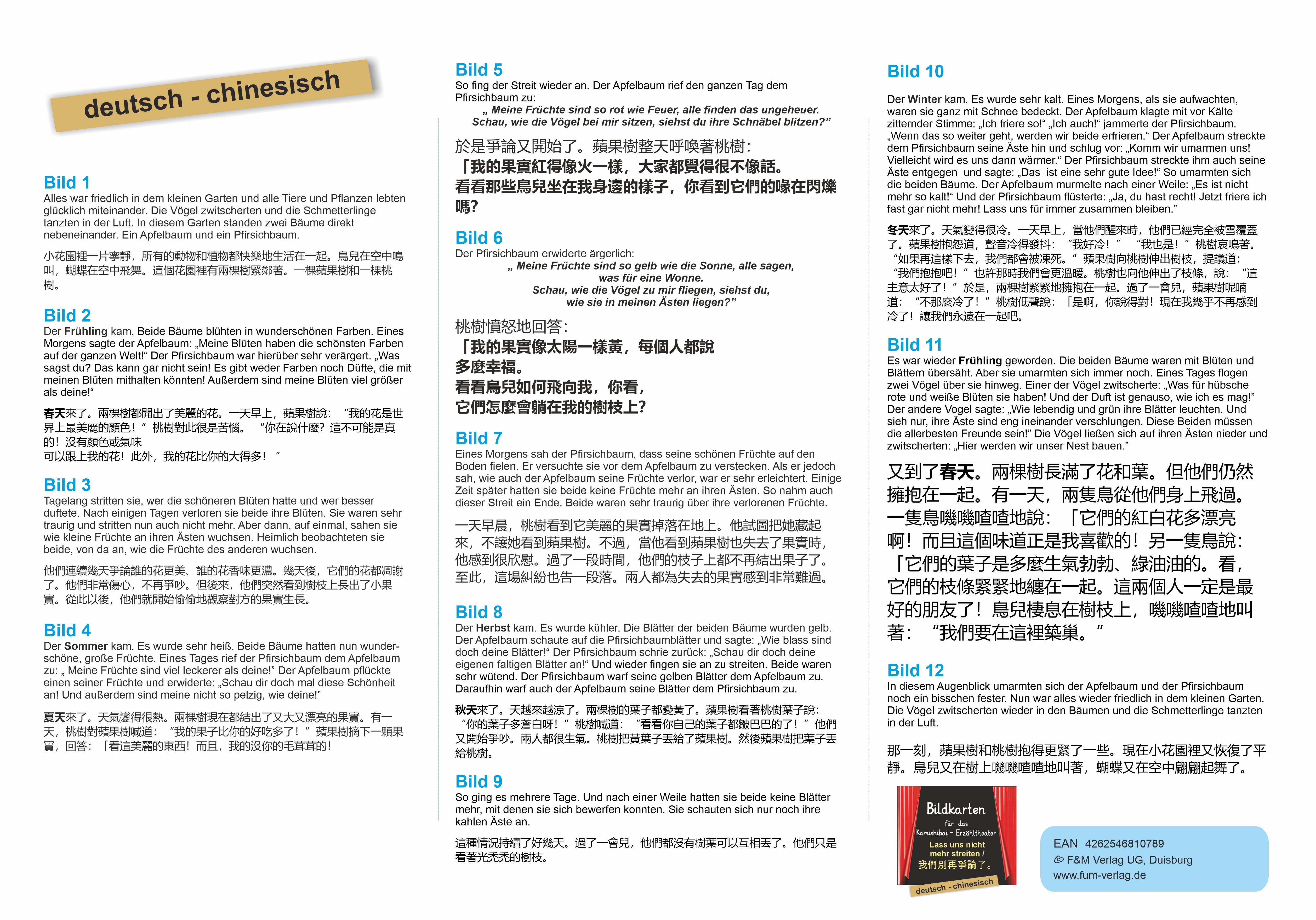 Zweisprachige Bildkarten der Bilderbuchgeschichte "Lass uns nicht mehr streiten" für das Kamishibai-Theater in deutsch/chinesisch