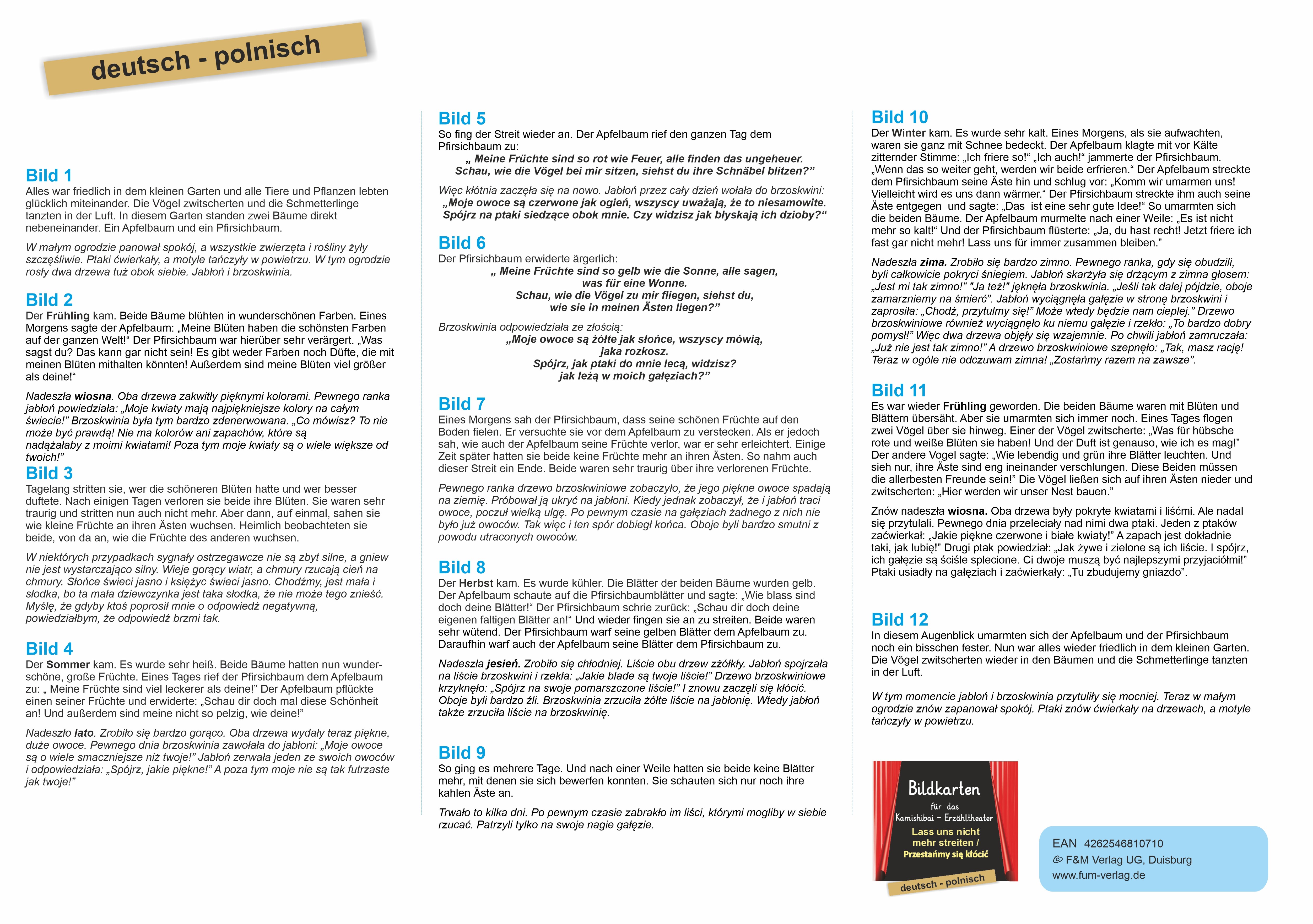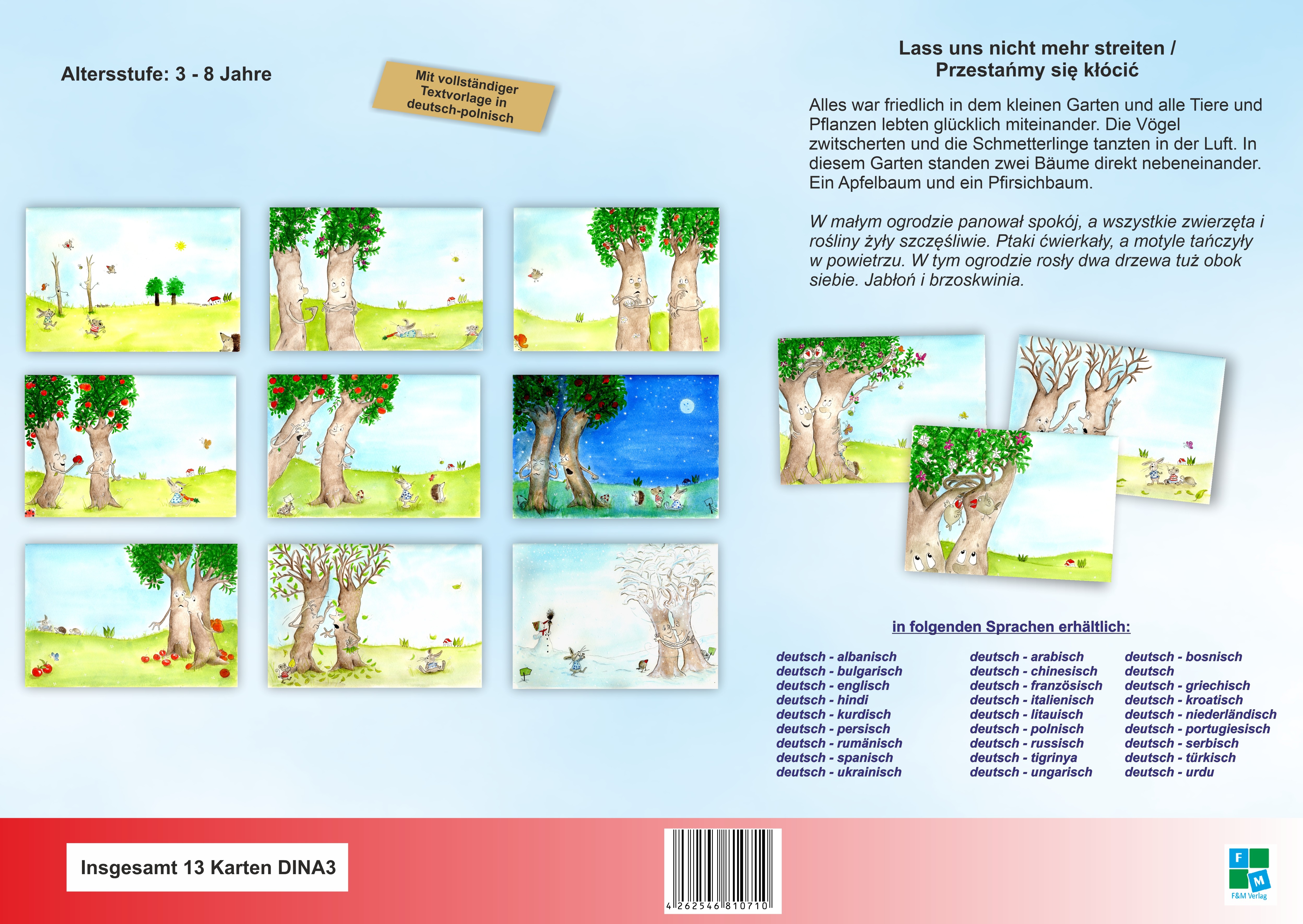 Zweisprachige Bildkarten der Bilderbuchgeschichte "Lass uns nicht mehr streiten" für das Kamishibai-Theater in deutsch/polnisch