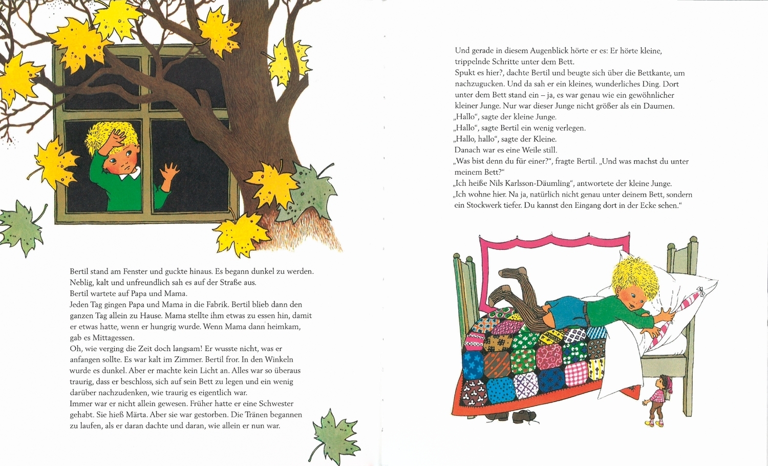Welches Kind möchte keinen Däumling? Astrid Lindgrens Klassiker in neuer Ausstattung Nils Karlsson-Däumling ist nur so groß wie ein Daumen und wohnt in einem Mauseloch unter Bertils Bett. Eines Tages besucht er Bertil und damit beginnt ein aufregendes Abenteuer! Nils Karlsson verrät ihm das Zauberwort, mit dem er genauso klein werden kann wie er. Jetzt kann Bertil ihn in seiner Wohnung besuchen, und teilt sich ihm einen Brotkrumen, der so groß wie die allergrößte Brotscheibe wirkt. Und eines Tages versteckt Bertil den kleinen Nils sogar unter seinem Pullover, als er mit seinen Eltern am Mittagstisch sitzt. Wie schön, wenn man so einen guten Freund hat!