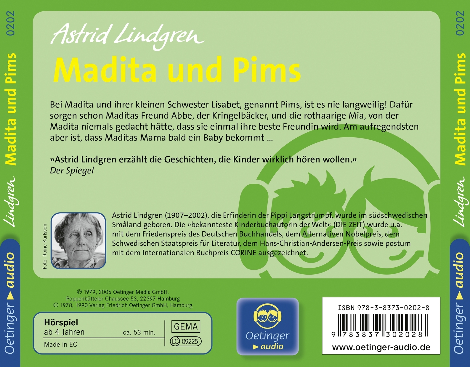 | Schlagworte | Audio-CD • AUDIO/Kinder- und Jugendbücher/Kinderbücher bis 11 Jahre • Birkenlund • Familie • Geschwister • große Schwester • Hörbücher • Hörbuch; Hörspiel für Kinder/Jugendliche • Hörspiel für Kinder/Jugendliche • Hörspiel für Kinder/Jugendliche (Audio-CD) • Kinderalltag • Kinderbuch ab 4 • Kinder-CDs (Audio) • Kinderhörbuch • Klassiker • kleine Schwester • Nostalgie • Schweden • Skandinavien • Sozialrealismus • Starke Mädchen • Tonträger |