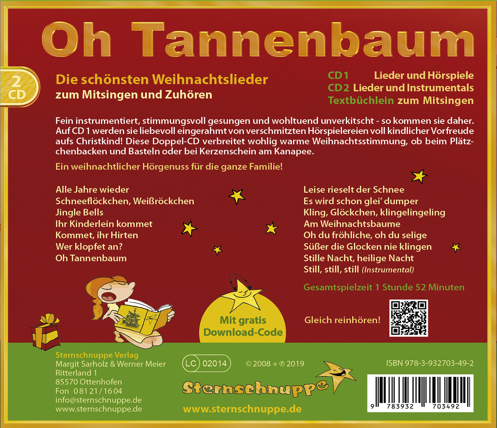 | Schlagworte | Alle Jahre wieder • Am Weihnachtsbaume • Avent • Dumper • Familie • Gemütlichkeit • Geschenk • Heilige Nacht • Instrumentals • Jingle Bells • Kinder-CDs (Audio) • Kinderlieder zur Weihnachtszeit • Klassiker • Kling Glöckchen • Leise rieselt der Schnee • Mitsingen • Nikolaus • Oh du fröhliche • Oh Tannenbaum • Schneeflöckchen • Stille Nacht • Süßer die Glocken nie klingen • Tannenbaum • Warten aufs Christkind • Weihnachten • Weihnachtslieder • Weihnachtslieder; Audio-CD • Weihnachtslieder-CD |