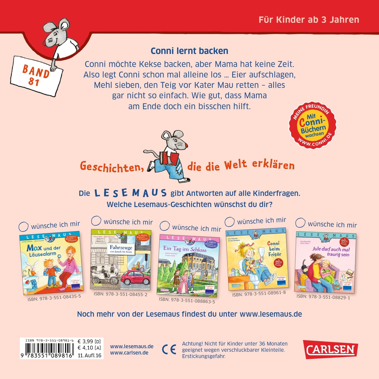 LESEMAUS 81: Conni lernt backen