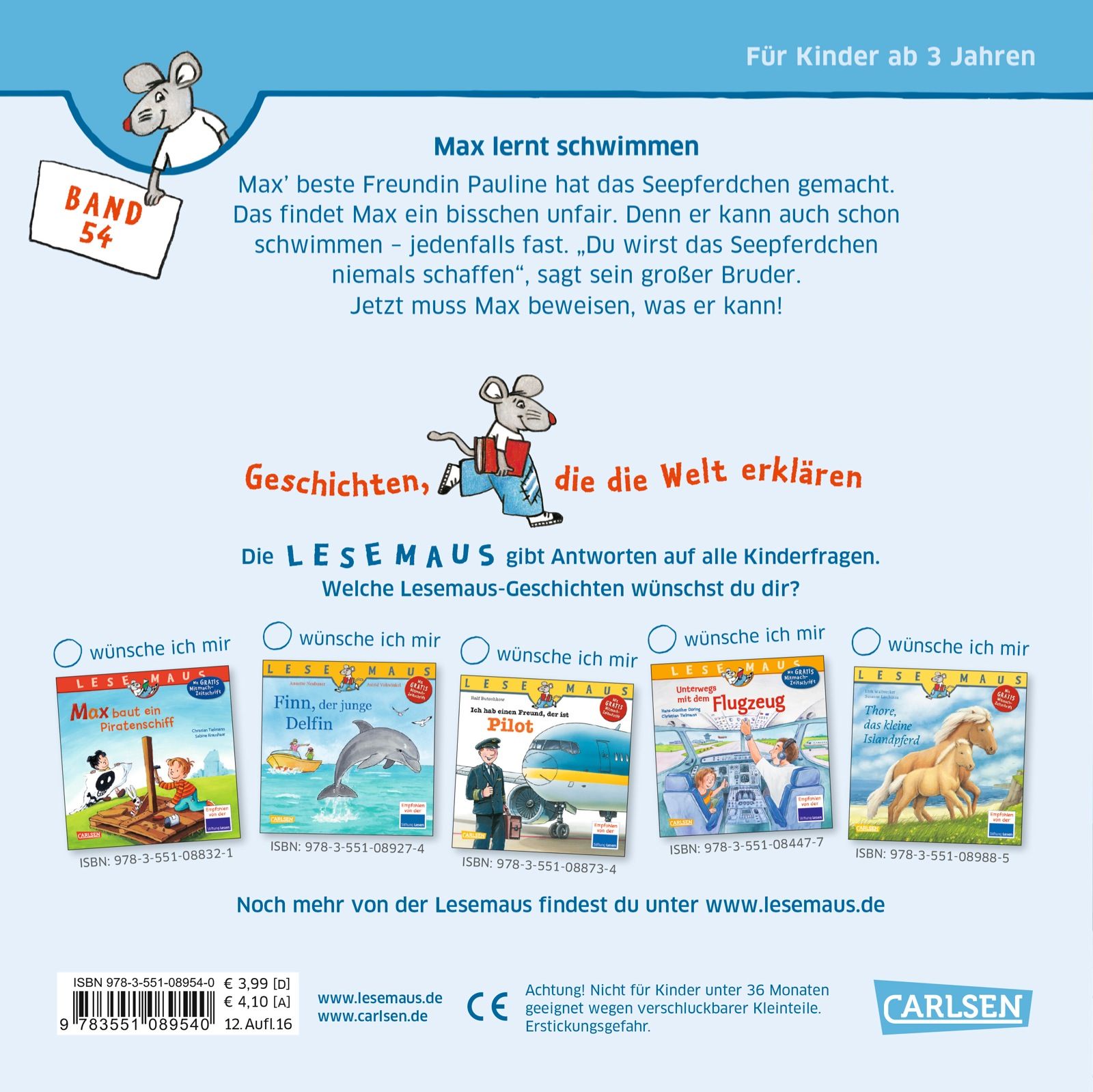 Max' beste Freundin Pauline hat das Seepferdchen gemacht. Das findet Max ein bisschen unfair. Denn er kann auch schon schwimmen, jedenfalls fast. "Du wirst das Seepferdchen niemals schaffen", sagt sein großer Bruder. Jetzt muss Max beweisen, was er kann!