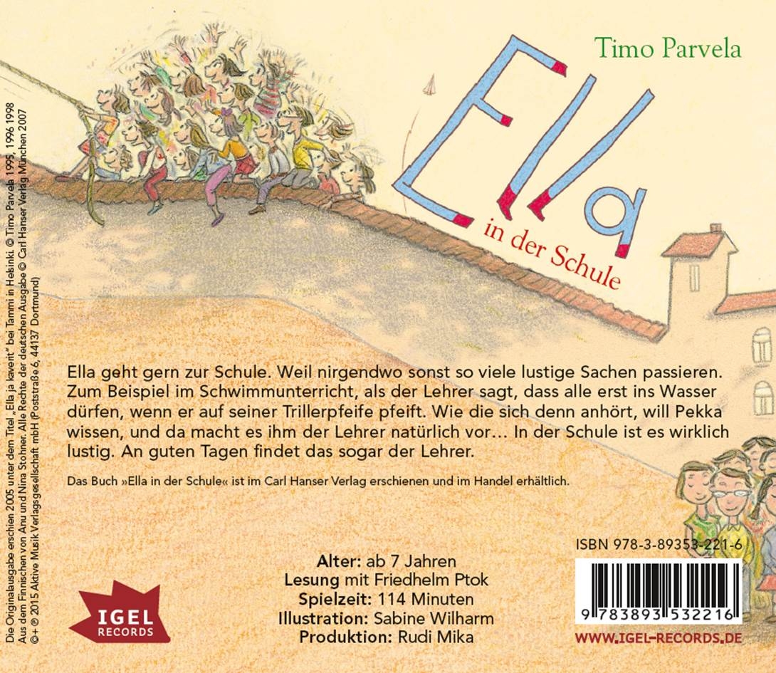 Timo Parvela, 1964 geboren, war lange und gern Lehrer, bevor er Schriftsteller wurde. Er schreibt für Erwachsene und Kinder und wurde dafür vielfach ausgezeichnet. Seine Ella-Bücher sind in Finnland Kult.