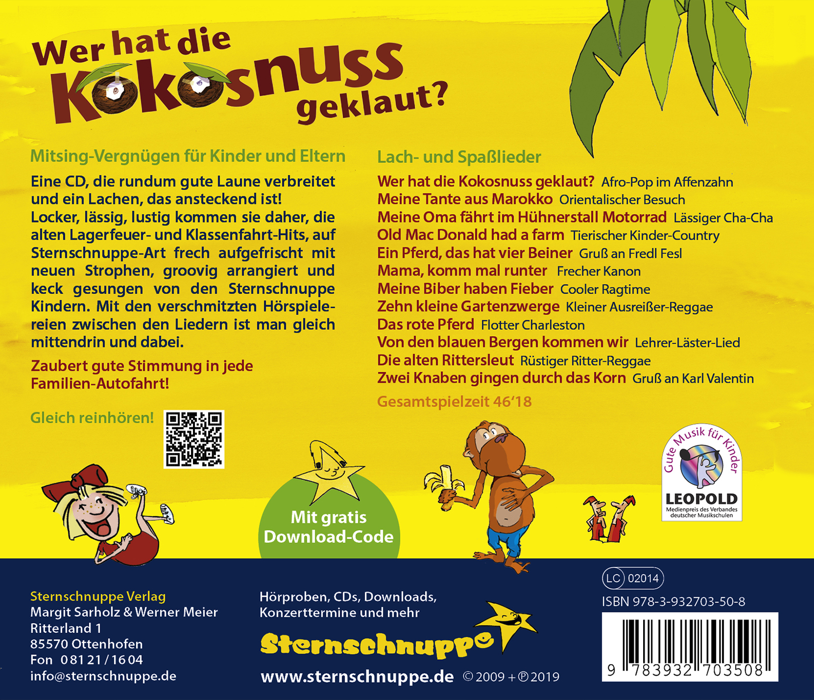Eine CD voll bekannter Lach- und Spaßlieder, bei der alle gleich mitsingen können - auch die Mamas und Papas! 12 echte Ohrwürmer sind hier versammelt: von Old Mac Donald's Farm geht's mit dem roten Pferd zur Tante aus Marokko und dann weiter zur coolen Oma, die im Hühnerstall Motorrad fährt und 'nen Laptop mit Pedalen hat. Locker, lässig und lustig kommen sie daher, die alten Lagerfeuer- und Klassenfahrt-Hits, die auf Sternschnuppe-Art mit groovigen Arrangements und einigen neuen Strophen frech aufgefrischt wurden. Und mit dem lustig illustrierten Textbüchlein macht das Mitsingen gleich nochmal so viel Spaß.