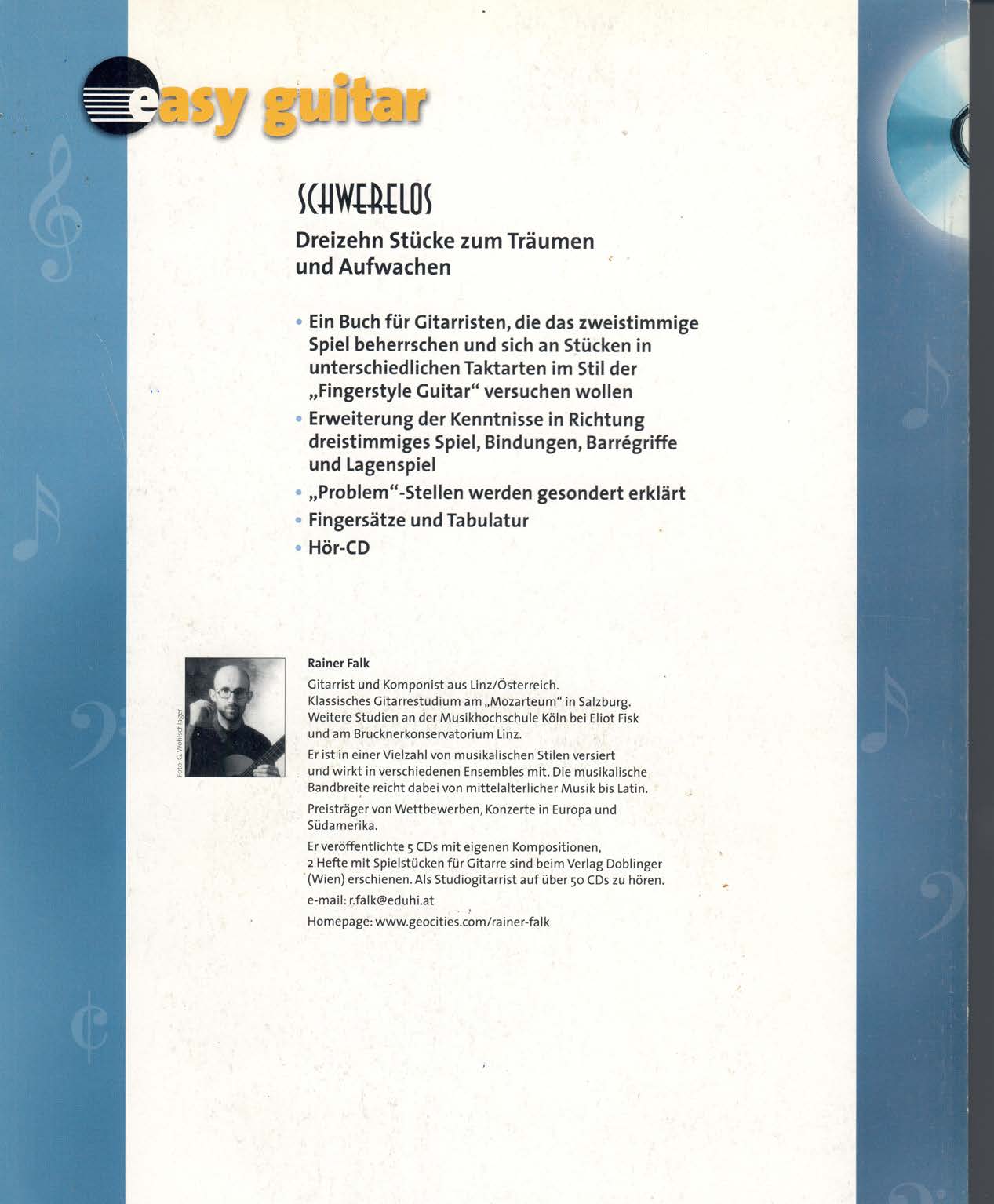 Rainer Falk, Gitarrist und Komponist aus Linz/Österreich, studierte Klassische Gitarre am "Mozarteum" in Salzburg. Es folgten zwei Jahre in Köln bei dem bekannten Virtuosen Eliot Fisk. 1998 schloss er am Brucknerkonservatorium in Linz mit Auszeichnung ab. Falk ist in einer Vielzahl von musikalischen Stücken versiert und wirkt in verschiedenen Ensembles mit. Die musikalische Bandbreite reicht dabei von mittelalterlicher Musik bis Latin. Er ist Preisträger von Wettbewerben mit Konzerten in Europa und Südamerika.