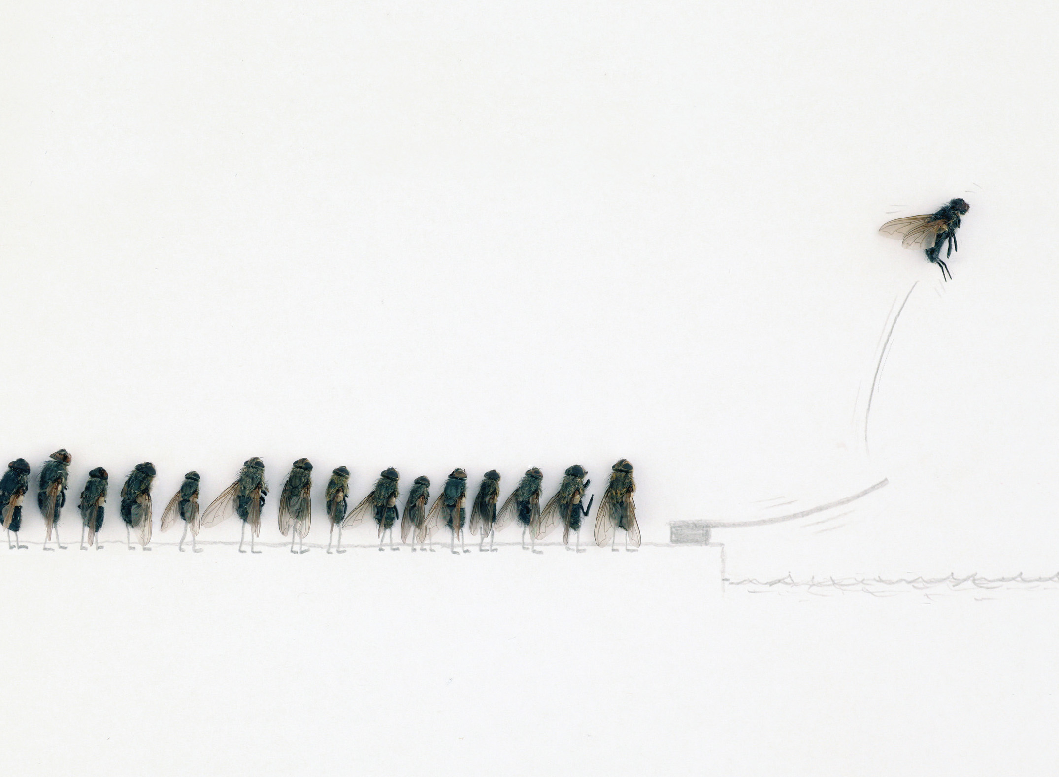 „Während lebende Fliegen einem oft auf den Keks gehen, kann man an diesen toten Fliegen seine Freude haben.“