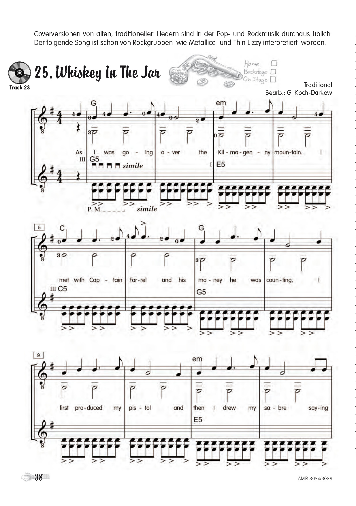 Mit dem 3. Band erlernen die Schüler das zweistimmige Spiel mit gegriffenen Bässen, den freie Anschlag (Tirando) und das Lagenspiel. Verschiedene Tonarten, Skalen, Pull off, Hammer on, Powerakkorde, Schlagrhythmen, Rhythmusschulung, die Bluesform, das Fingerpicking u.v.m. stehen auf dem Programm. Durch das stilistisch breitgefächerte Spielmaterial aus Klassik, Latin, Reggae, Rock, Folk, etc. bekommt der Schüler einen Einblick in die Vielfalt der Gitarrenmusik. Zur Vertiefung der Inhalte warten wieder viele spannende Aufgaben- und Rätselseiten auf die Schüler. Ein beiliegendes Kartenblatt erleichtert es, sich das komplette Griffbrett zu erobern. - 164 Seiten mit Karten-Griffbrett zum Ausschneiden. Ausgabe ohne Begleit-CD