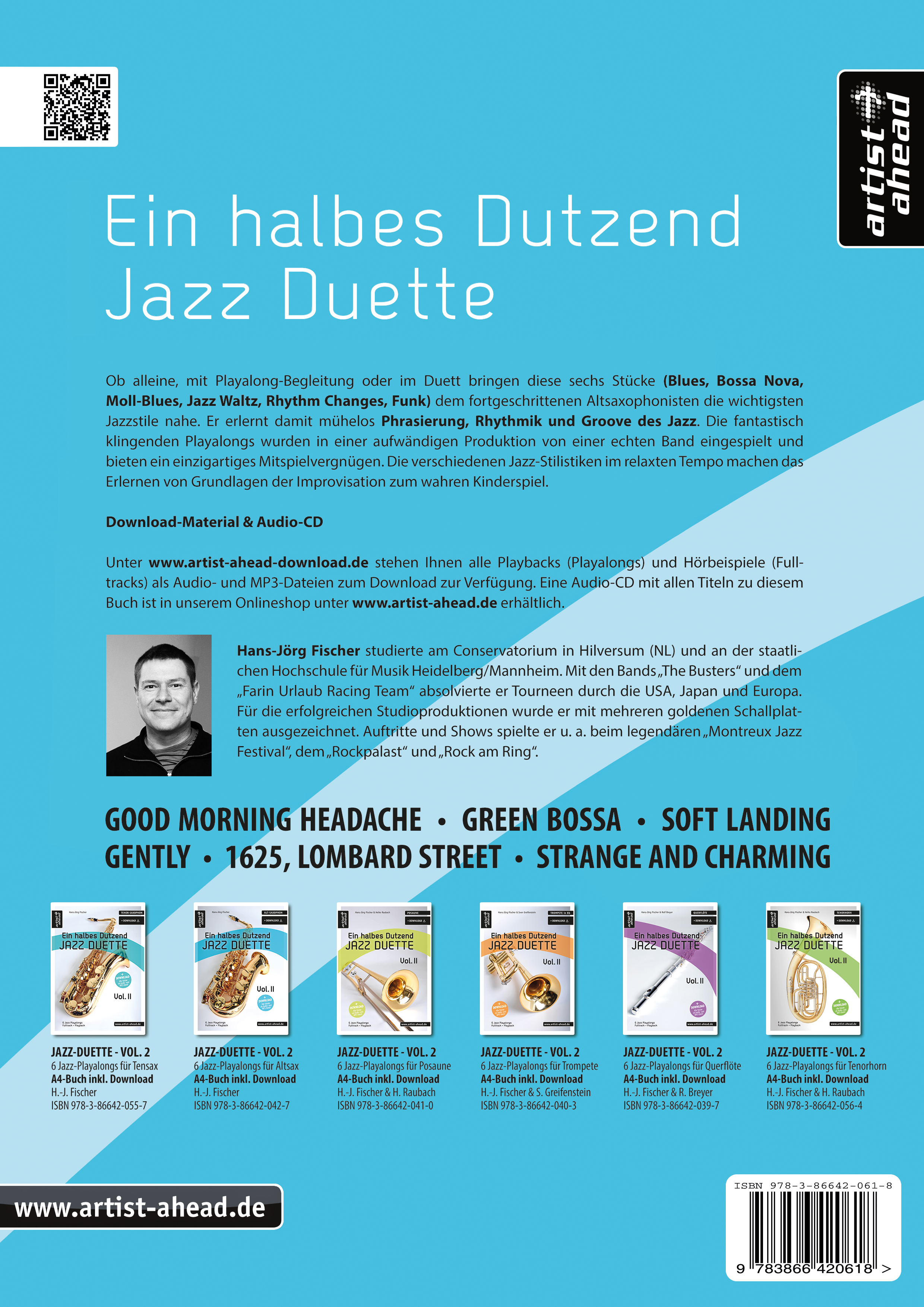 Scanne die im Buch enthaltenen QR-Codes mit dem Smartphone oder Tablet und gelange direkt zu den Hörbeispielen. Unter artist-ahead-download.de stehen Ihnen alle Playbacks (Playalongs) und Hörbeispiele (Fulltracks) als Audio- und MP3-Dateien zum Download zur Verfügung. Eine Audio-CD mit allen Titeln zu diesem Buch ist in unserem Onlineshop unter artist-ahead.de erhältlich.