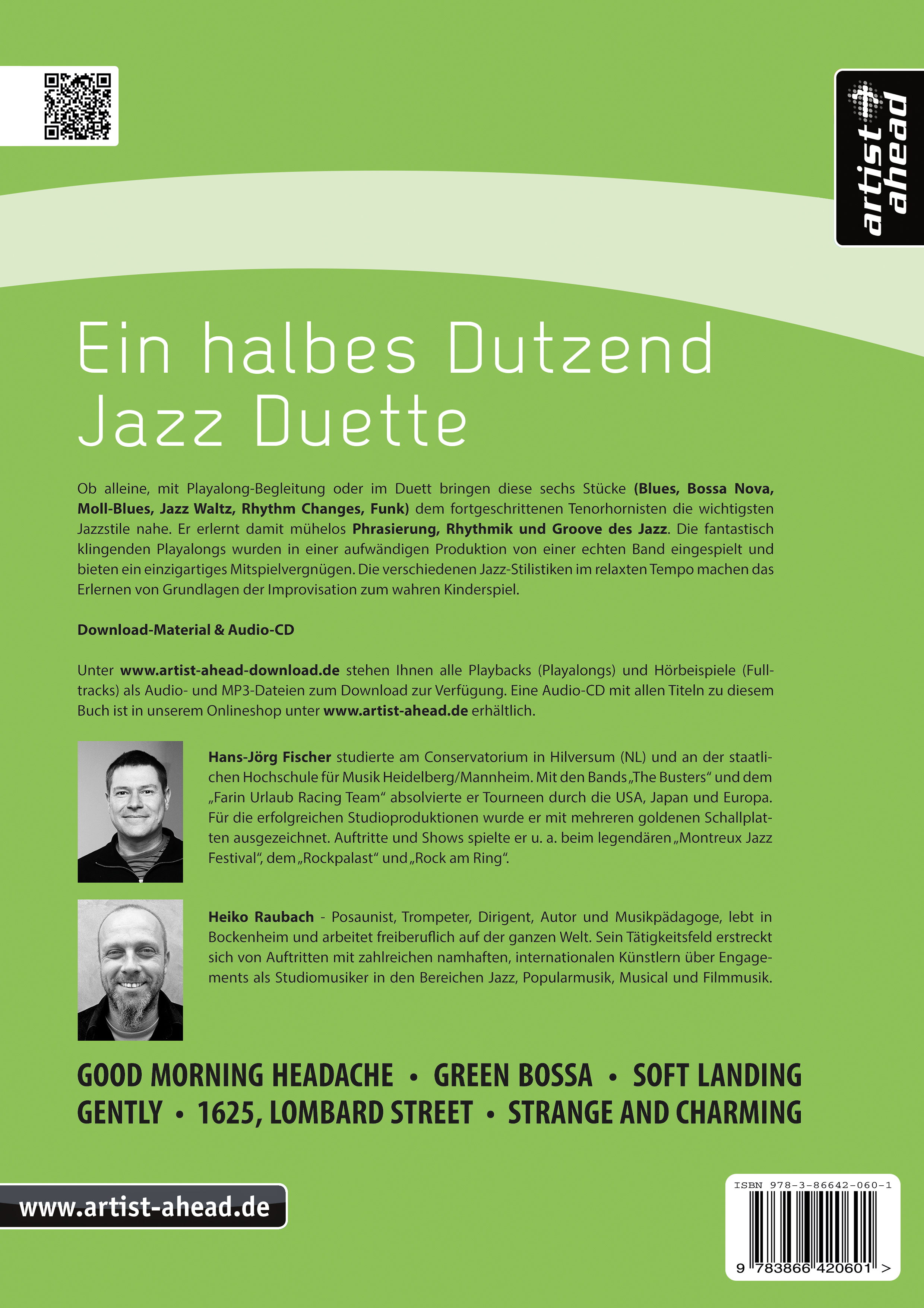 | Schlagworte | artist ahead • artist ahead musikverlag • Blasinstrumente • Blues • Bücher • Duett • Duette • fachbücher • Freizeit • Hans-Jörg Fischer • Heiko Raubach • Hobby • Instrumente • Instrumentenkunde • Jazz • Jazz-Duette, • Jazzduette, Playalong, Playalong-CD, fortgeschritten, • Kammermusik • Lernen & Nachschlagen • Lernen & Nachschlagen • Musik • Musikalien Rock/Pop/Jazz; Horn (Duo) • Musikalien Rock/Pop/Jazz; Horn (Lern-Audio-CD) • Musikgattungen • Musikinstrumente allgemein • Musiknoten • Musikwissenschaft • Noten (Musik) • Pop & Rock • Pop & Rock • Popularmusik • Rockmusik • Schule • Tenorhorn • Tenorhorn, Horn, Jazz, Duett, Duette, • Trompete • Trompete & Klavier • Trompete & Klavier • Trompetenschulen • Unterricht & Lernhilfen • Unterrichten • Unterricht & Lernhilfen • Unterrichtswerke |