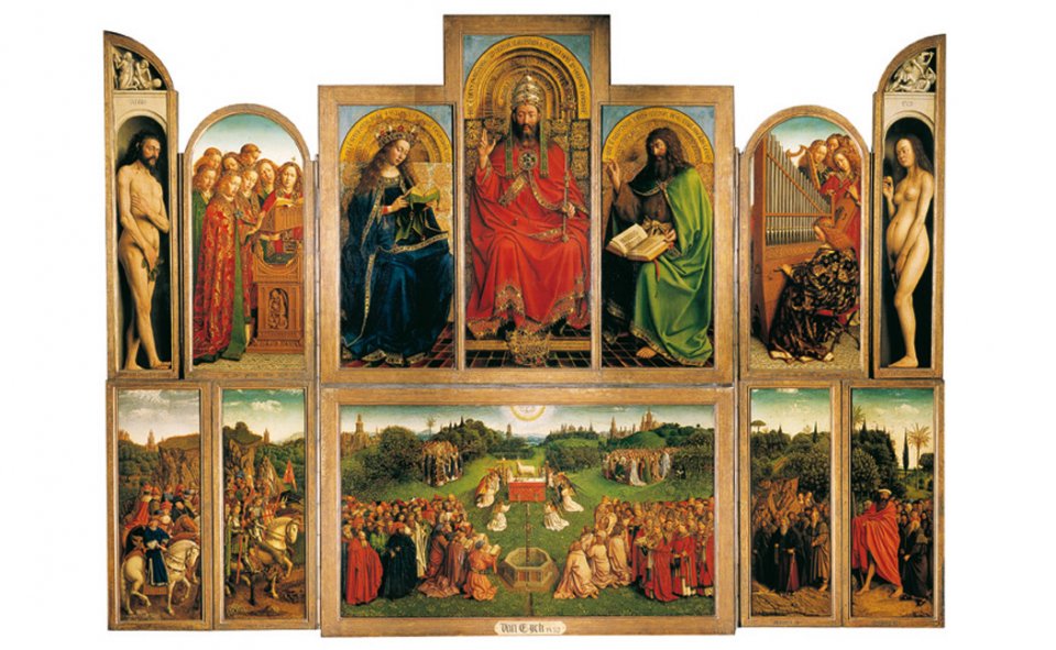 Der Genter Altar, ein künstlerischer Meilenstein, der die mittelalterlichen Bildkonventionen erstmals umfassend durch eine noch heute geläufige Bildsprache ersetzte, wurde von Van Eycks älterem Bruder Hubert begonnen und von Jan van Eyck 1432 vollendet. Sein bahnbrechender Realismus beschränkte sich nicht auf seine religiösen, symbolisch aufgeladenen Darstellungen, sondern zeichnet auch seine weltlichen Werke aus wie das Arnolfini-Doppelbildnis von 1434 - eines der berühmtesten und zugleich auch geheimnisvollsten Werke der Kunstgeschichte.