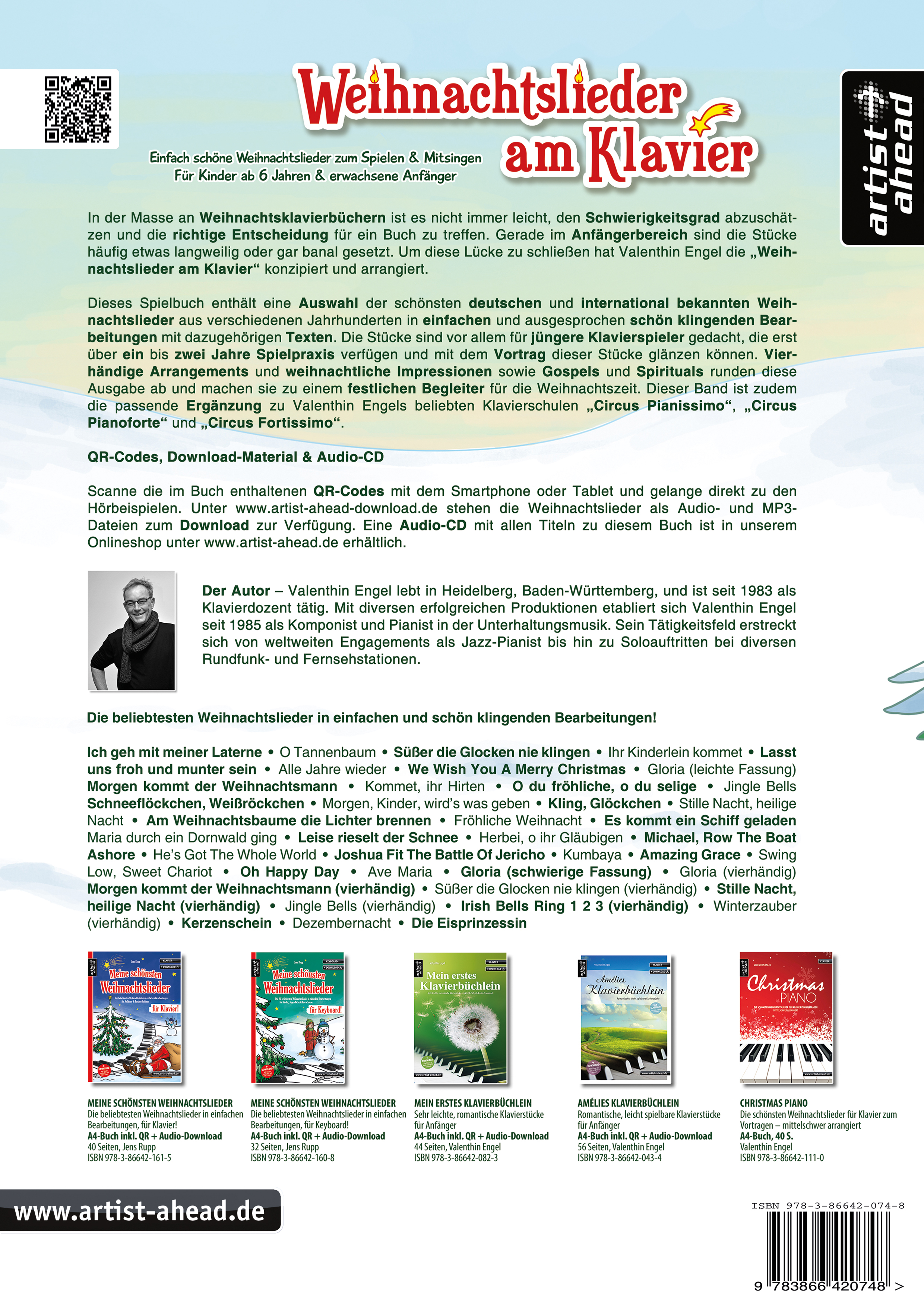 Scanne die im Buch enthaltenen QR-Codes mit dem Smartphone oder Tablet und gelange direkt zu den Hörbeispielen. Unter artist-ahead-download.de stehen die Weihnachtslieder als Audio- und MP3-Dateien zum Download zur Verfügung. Eine Audio-CD mit allen Titeln zu diesem Buch ist in unserem Onlineshop unter artist-ahead.de erhältlich.