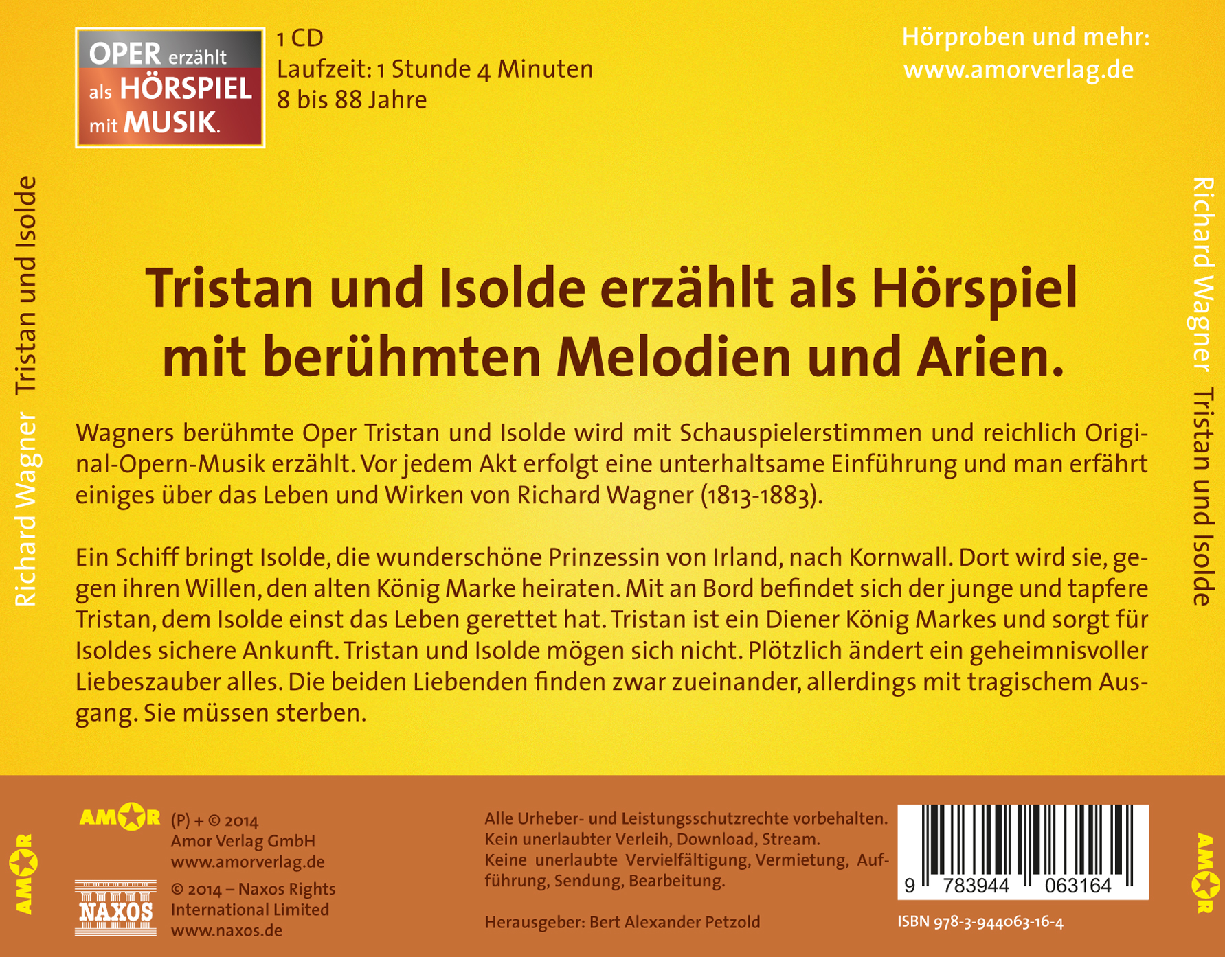 | Schlagworte | Arie • CD • Cornwall • Einführung • Erwachsene • Erzählung • Geräusch • Hörbuch; Hörspiel für Kinder/Jugendliche • Hörspiel • Irland • Isolde • Jugend • Kind • Kinder • Klassik • Klassik-CDs Kinder-CDs • König • Leben • Marke • Musik • Oper • Schiff • Tristan • Tristan und Isolde • Wagner • Wagner, Richard • Werk • Zauber |