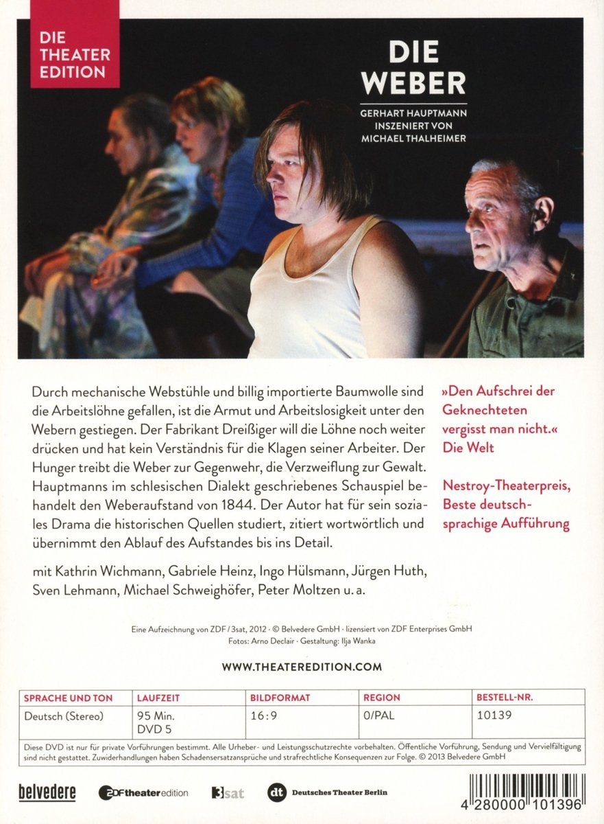 | Schlagworte | Bel Air • Belvedere • Deutsches Theater Berlin • Film • Hauptmann • Klassiker • Theater • Theater Edition • Theaterfilm • Weber |