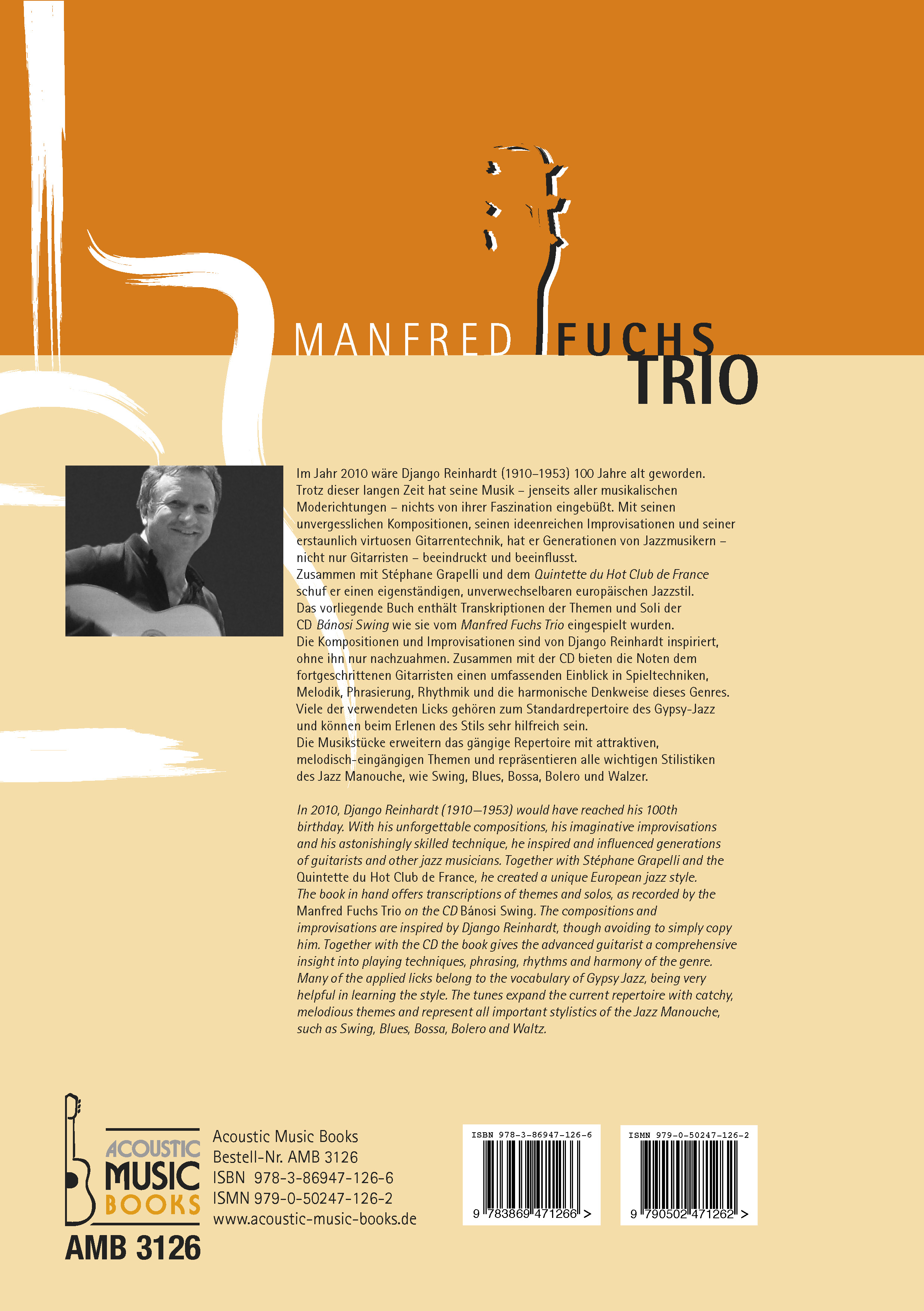 | Schlagworte | Begleitrhythmen • Folkpicking Patterns • Fuchs, Manfred • Gemeinsames Musizieren • Gipsy Swing • Gitarre • Gitarre solo • Musikalien Rock/Pop/Jazz; Gitarre/E-Gitarre (Schulen) • Noten (Musik) • Profibegleitung • Spieltechniken • Standardbegleitung • Workshop |