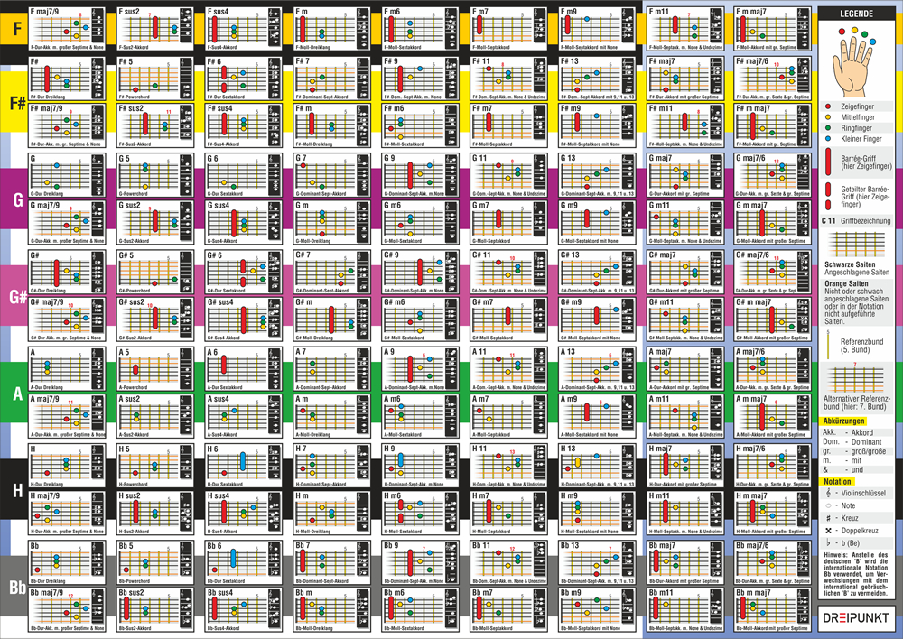| Schlagworte | Akkord • Akkorde • Dreipunkt • Dreipunkt Verlag • Dreipunkt-Verlag • Gitarre • Gitarre lernen • Gitarre (Nonbook) • Gitarre spielen • Griff • Griffe • Info Tafel • Info-Tafel • Instrument • Musik • Musikalien; Gitarre (Poster) • Musikinstrument • Musizieren • Noten • Noten (Musik) • Schema • TABs |